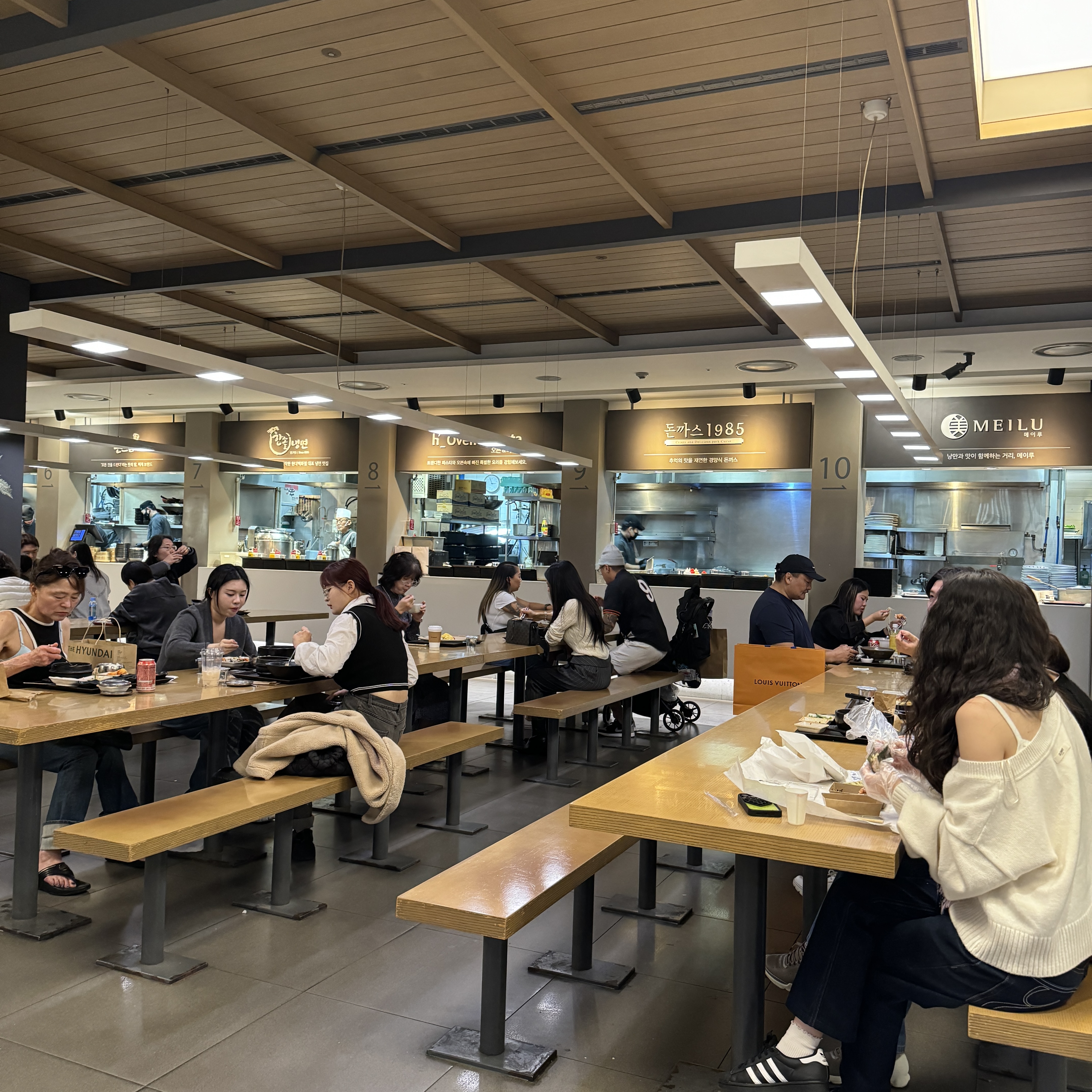 사실 뭐 볼 일이 있어서 간 건 아니고, 미팅 시간이 좀 남았길래 현대백화점 카드가 있던 지인이 2시간 주차 무료라고 해서 밥 먹을 겸 해서 갔다. h_kitchen. 여기 괜찮네. 음식 가격 비쌀 줄 알았는데, 가격 대비 퀄리티 좋음. 외국인들이 많은 게 특징.