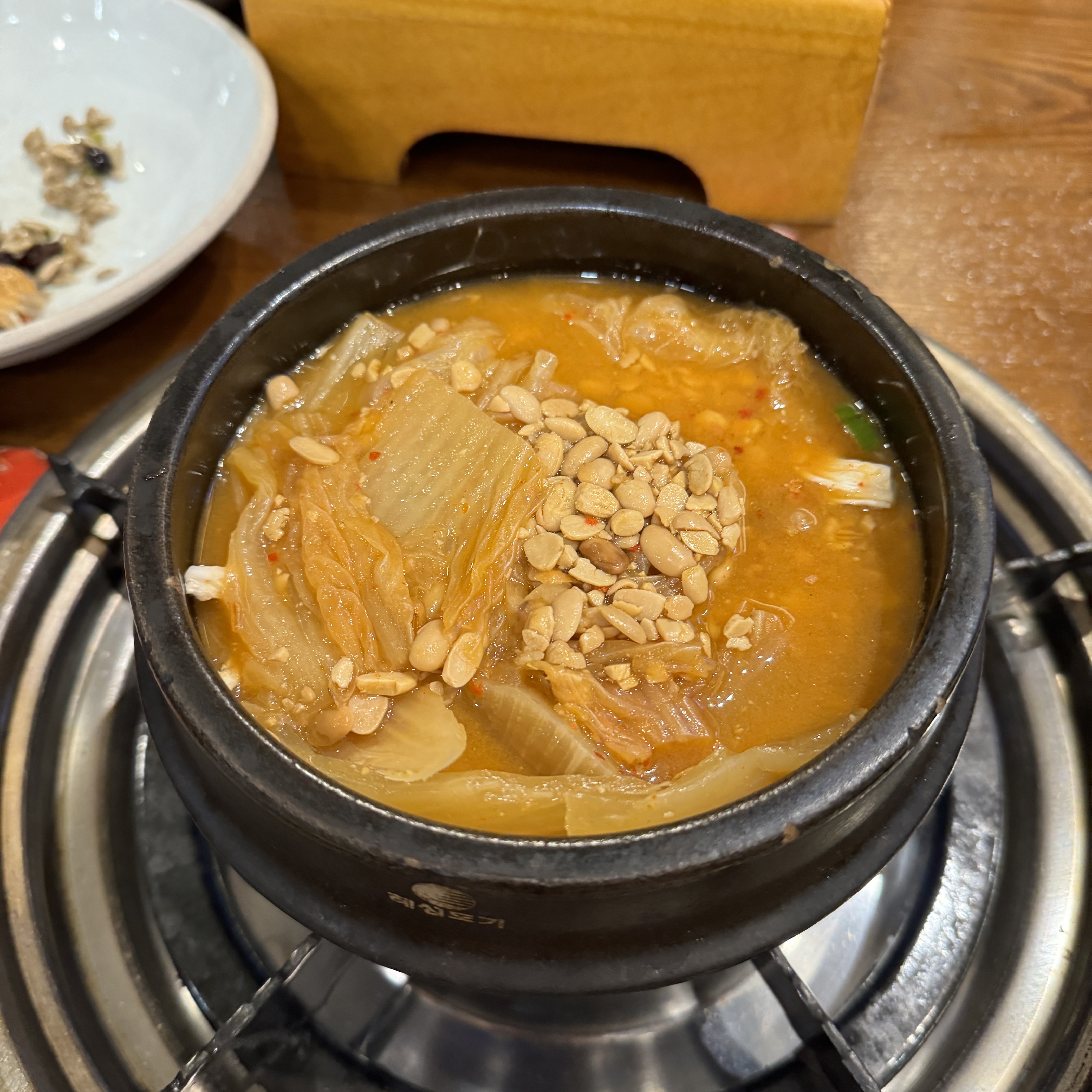 이건 청국장. 청국장은 내가 많이 못 먹었다. 청국장 나올 때 즈음에 이미 나는 식사를 거의 다 끝냈고, 동치미, 파김치 리필해서 가자미랑 함께 배불리 잘 먹었더랬다. 여기 음식 맛있다. 그래서 추천. 회사 인근이라 손님 오면 여기 데려가야겠다는 생각이 들던.