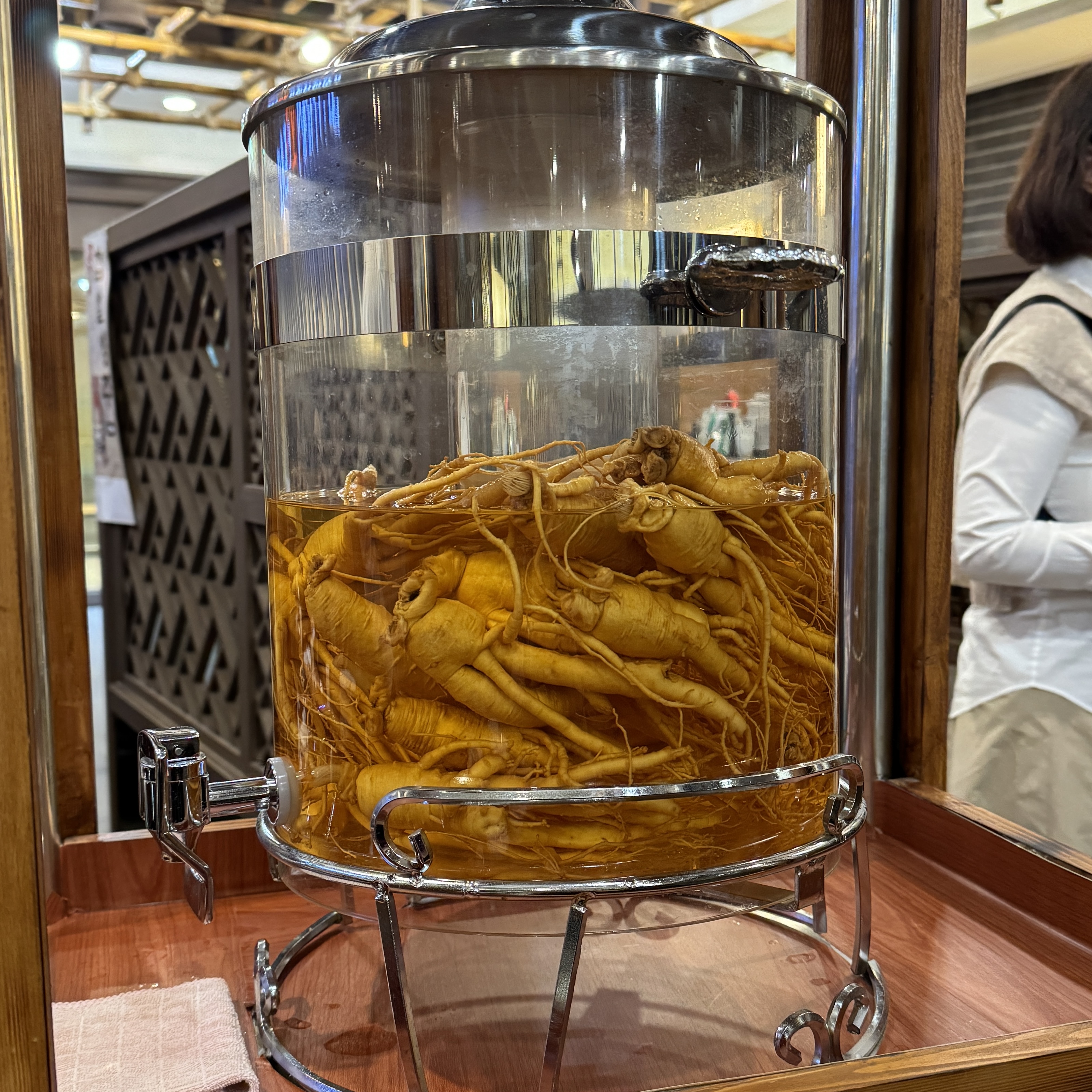 그리고 서비스라고 돌아다니면서 주는 인삼주. 한 잔 원샷했더니 몸이 뜨근해지더라. 몸에 열이 많아서 인삼 잘 안 먹는 편인데, 나이가 나이인지라. 인삼이 들어가서 그런 건지, 술을 먹어서 그런 건지는 나도 잘...