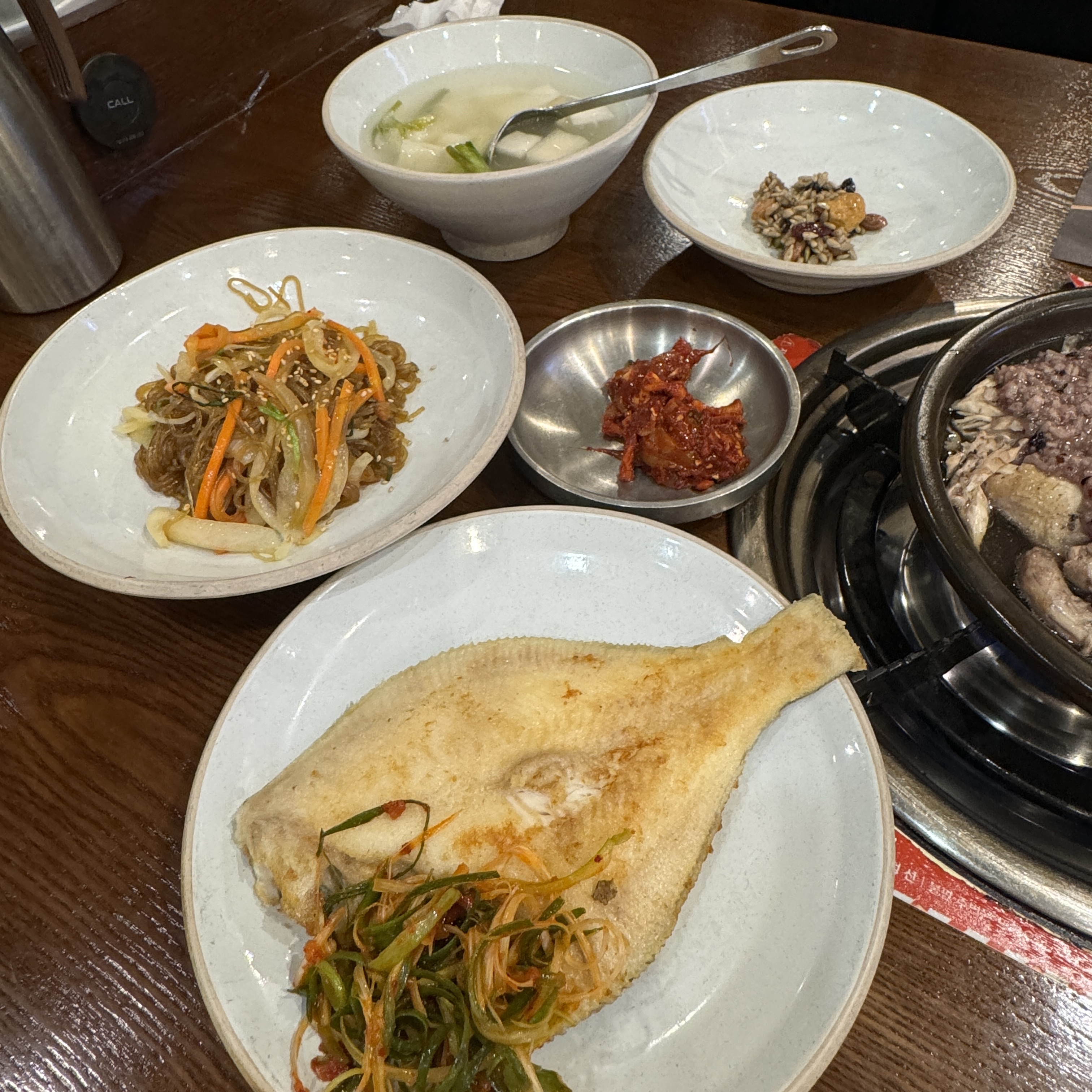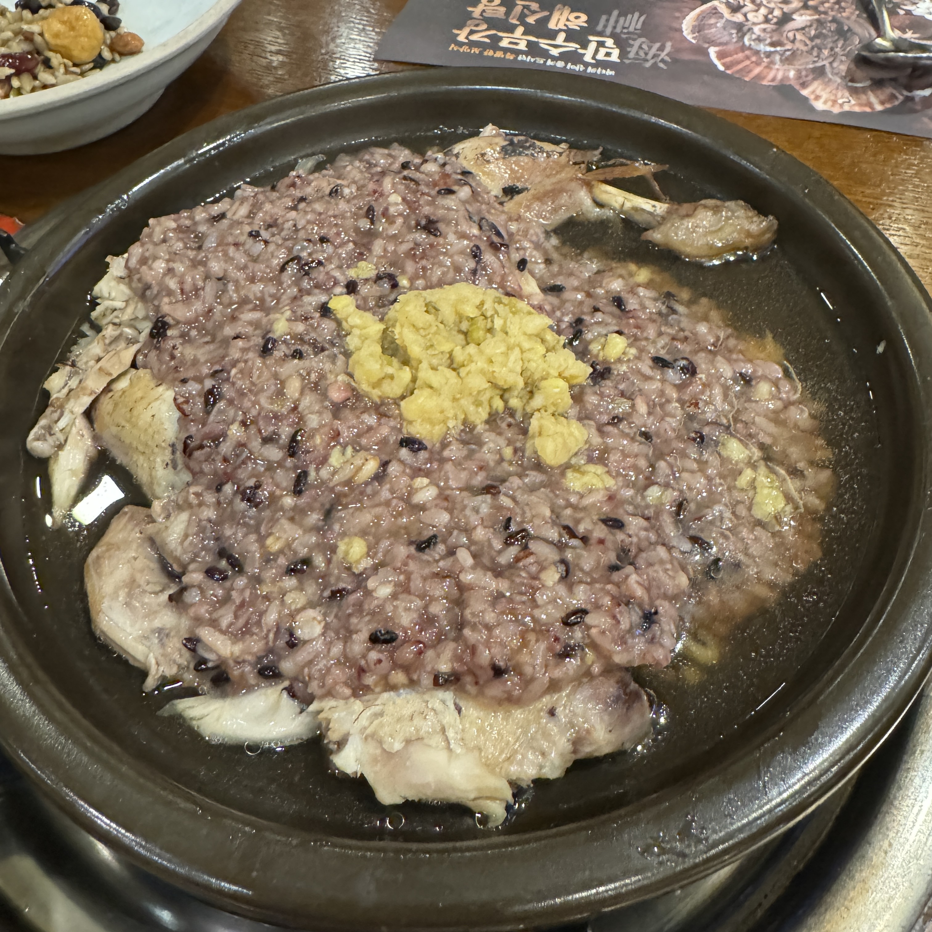 이게 녹두닭죽인데, 맛있긴 하더라. 그러나 나는 물에 빠진 고기는 그닥 선호하질 않아서. 거의 대부분을 지인이 다 먹었다는.