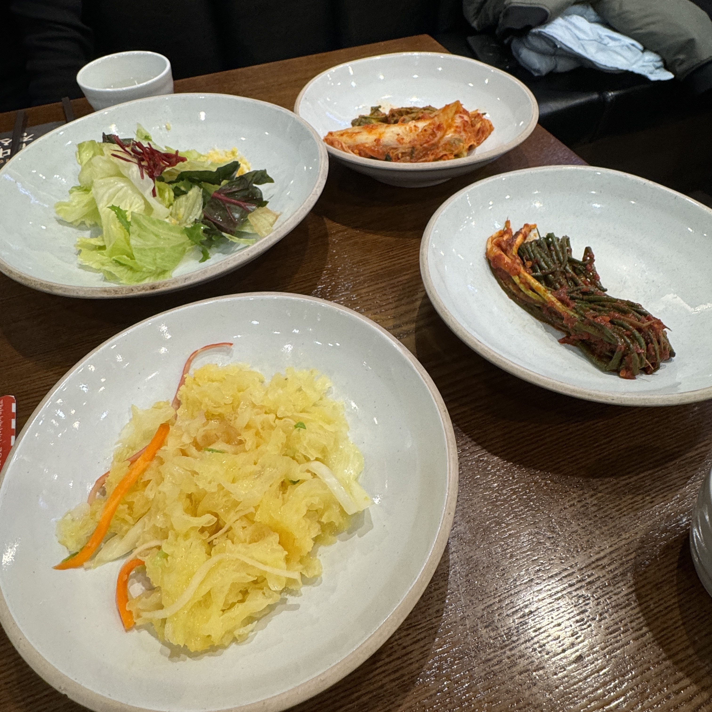 우리가 시킨 건 곤드레 정식, 시레기 정식. 둘 다 21,900원. 여기엔 메인 메뉴가 없는 거 같아서 산더미불고기 정식(24,900원) 시킬라다가 녹두닭죽이 나온다 해서 닭 매니아인(그렇다고 치킨은 그닥 즐겨 먹지 않더라) 지인이 이걸로 시킨 거다. 나는 시레기, 지인은 곤드레. 찬 가짓수 많은 거 별로 좋아하지 않지만(난 내가 먹을 것만 나오는 게 좋다.) 그 중에 지인이 주로 먹는 찬과 내가 주로 먹는 찬이 달라서 나는 내가 먹는 것만 먹었다. 찬도 맛있더라. 이 집 음식 할 줄 아는 집. 내가 주로 먹은 찬은 동치미와 파김치.