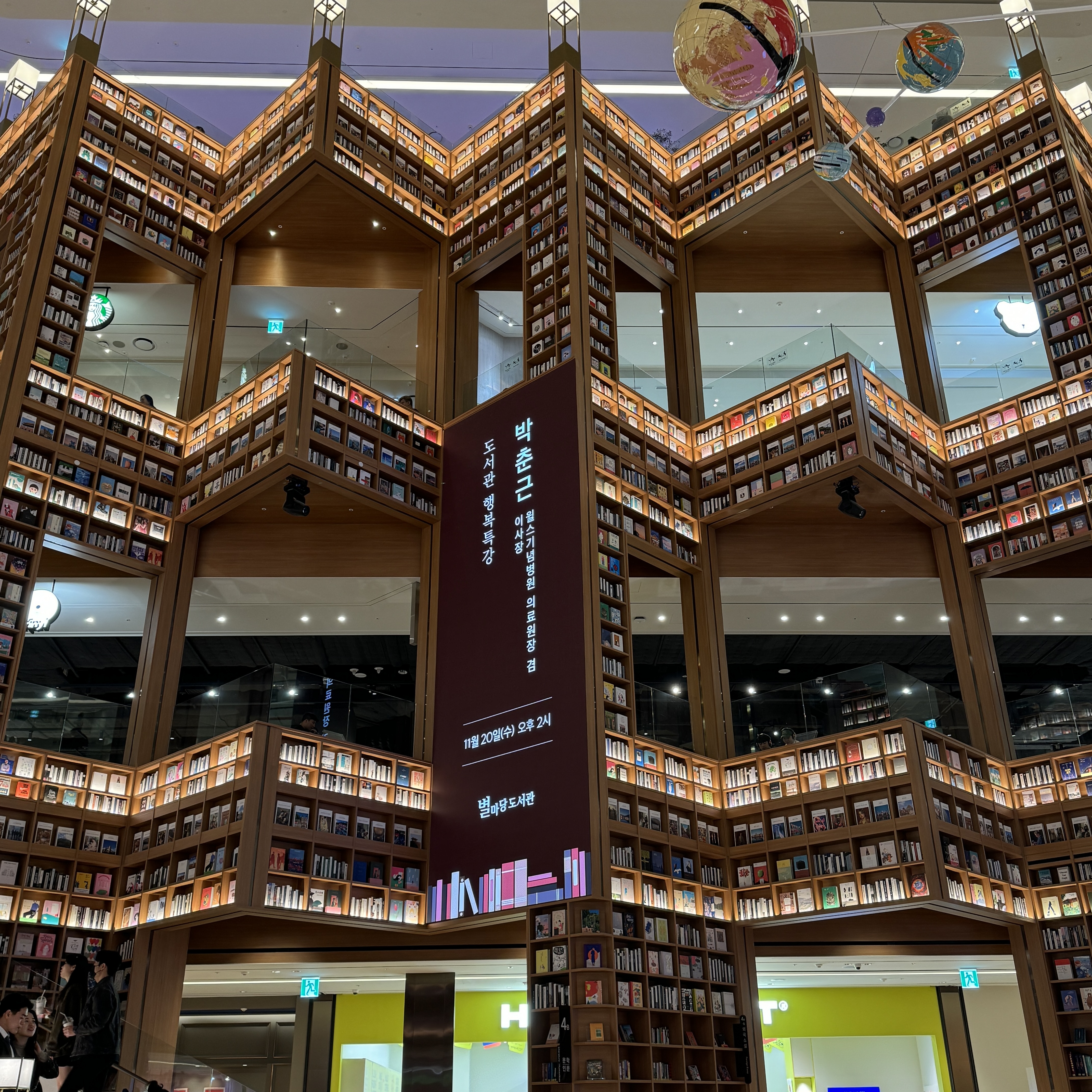 인스타에서만 봤다. 분명 코엑스는 아닌데, 비스무리한데, 여기 어디지 했었는데, 수원 스타필드 4층에 있더라. 별마당 도서관. 여기 보자마자 들었던 생각은 '인터스텔라' 느낌. 아마 여기 방문한 많은 이들이 그런 생각이 들었을 거라 본다. 책 뭐라도 읽어보려고 검색했는데 내가 읽고자 하는 책은 누가 읽고 있는 건지 아니면 읽다가 다른 데 아무 데나 꽂은 건지 모르겠네. 제 자리에 없더라.