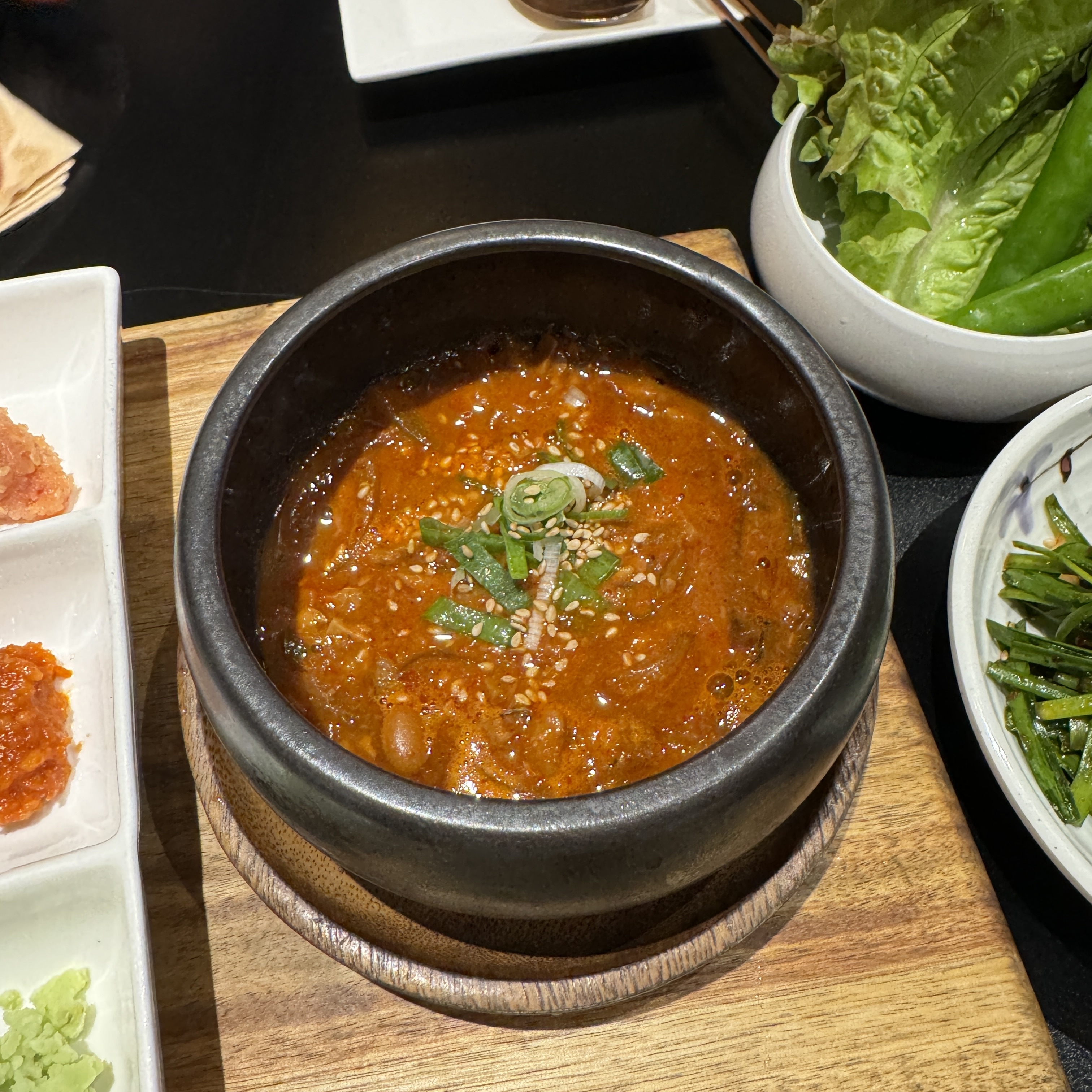 찬은 정갈하게 나온다. 특히나 내가 좋아하는 찬이 있어서 좋았다는. 상추 줄기. 아삭한 식감 좋아한다. 그리고 쌈 싸먹을 때 필요한 강된장. 근데 거의 먹지 않았다. 별도로 있는 소금(돼지고기와 궁합이 잘 맞는단다) 찍어 먹는 게 훨씬 나은 거 같아서.