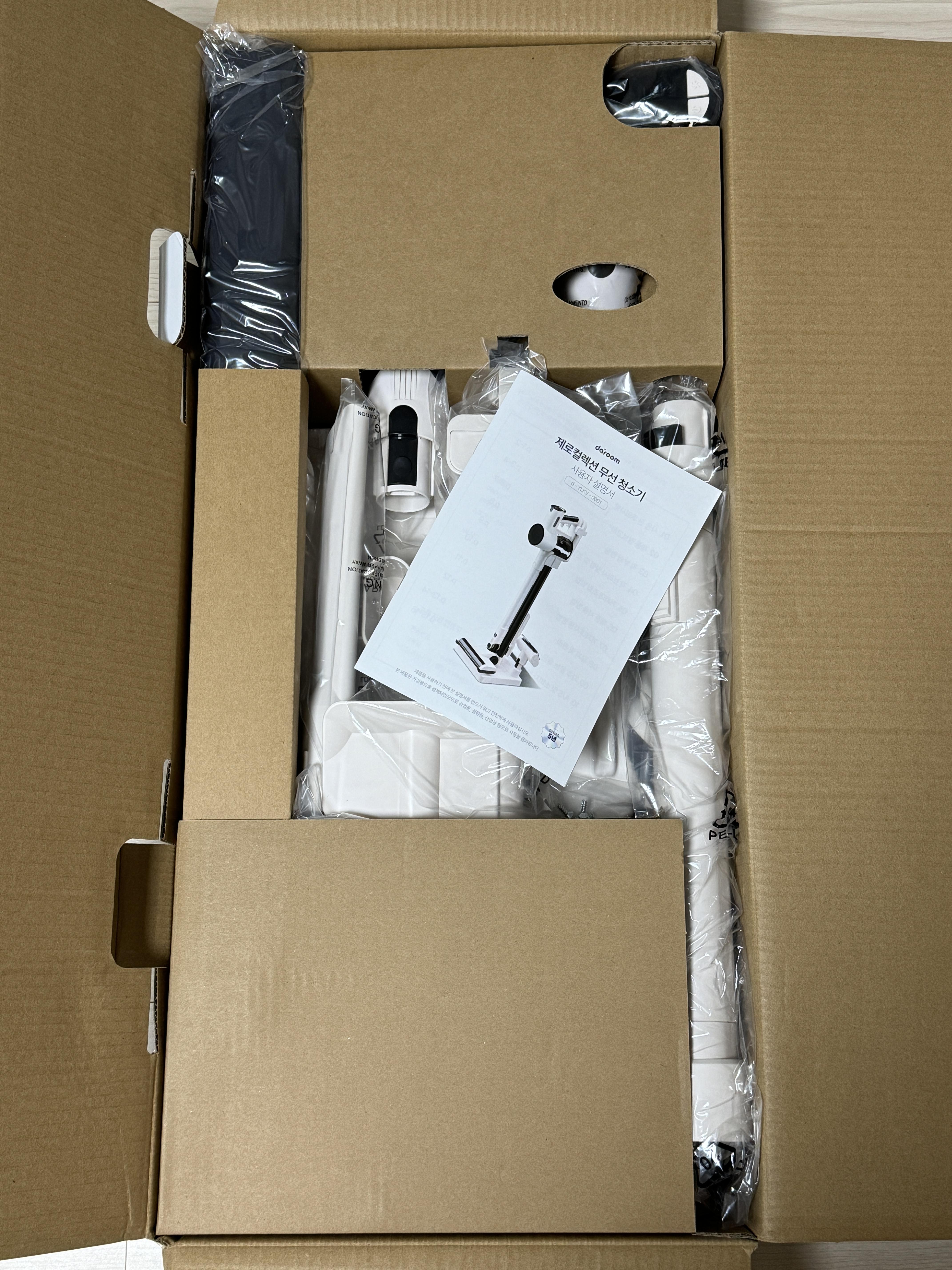 조립해야 된다. 설명서 보고. 어렵지 않아요. 이케아도 조립하는 판국에 이 정도 즈음이야. 아쉬운 점이 없진 않다. 재질. 전기포트도 그렇지만 재질이 좀 가볍다. 특히 거치대 바닥이. 그래서 고정이 안 되어 있으면 거치대에 청소기 꽂을 때 거치대가 밀리거나 흔들린다. 그래서 벽쪽에 붙여둬야 되는. 아마 이런 문제 때문에 거치대 상부에 보면 뒤에 쿠션 같은 게 있어서 벽에 부딪혀도 손상되지 말라고 한 게 아닌가 싶다. 이 부분이 제일 아쉬운 부분.