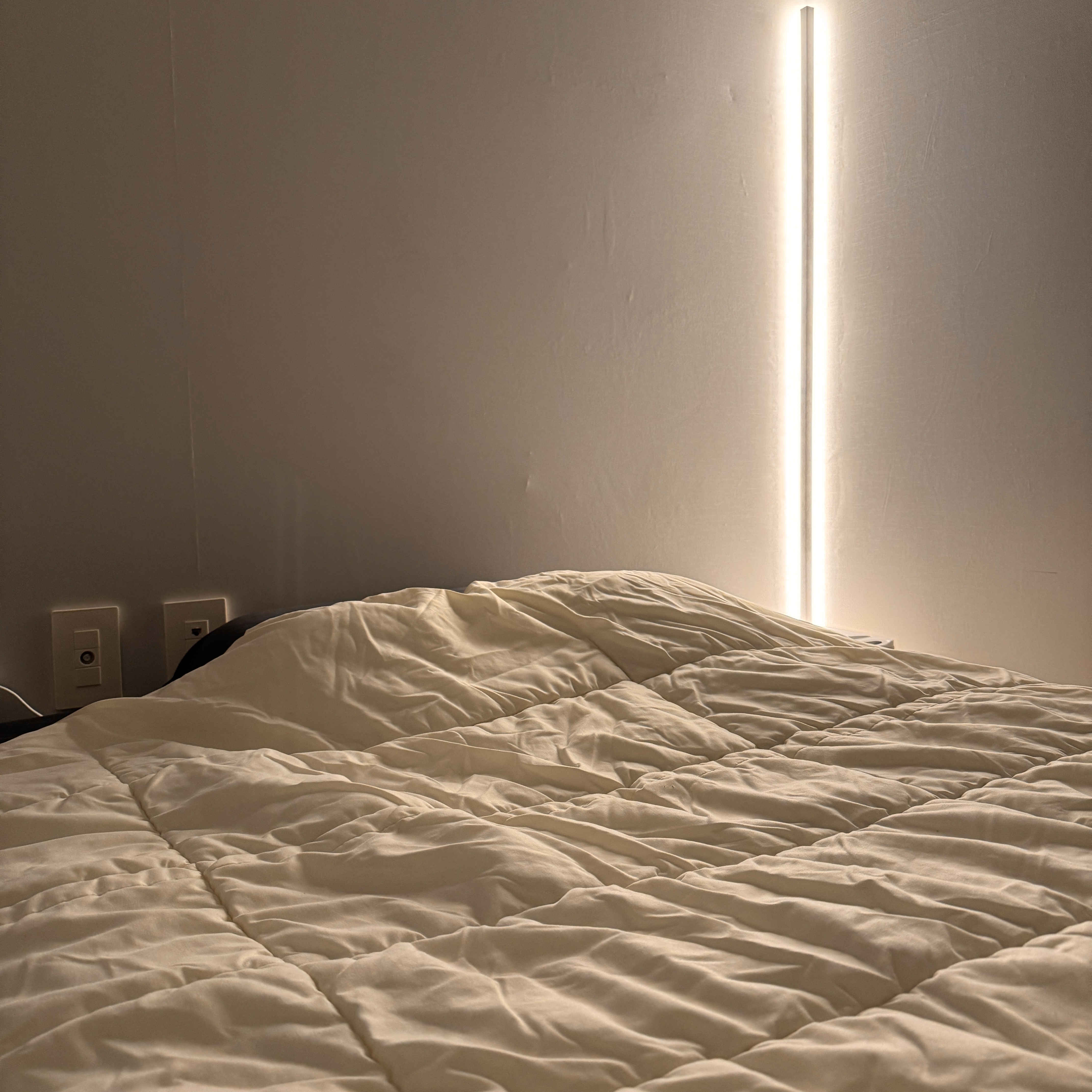 침대 옆 벽 코너에 세워두려고 아랫부분이 ㄱ자 형태로 산 거였다. 그래도 따뜻해보이는 색상이긴 한데, 생각보다 밝네. 그렇다고 밝기 조절 기능이 있는 것도 아니고. 이보단 좀 어두웠으면 했는데.