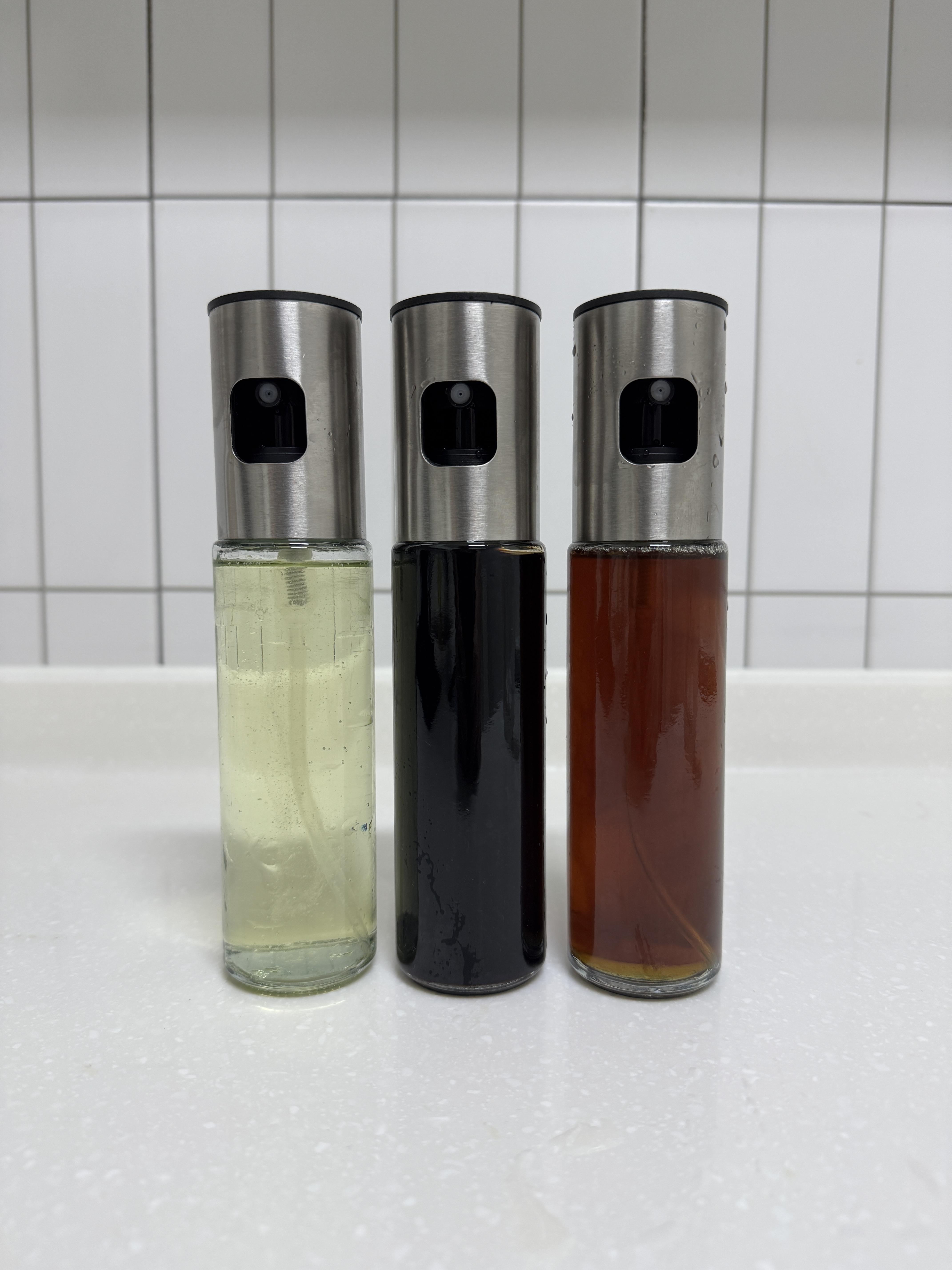 집에서 밥을 그리 자주 해먹지는 않지만, 이사온 집은 근처에 밥 먹을 데가 없다. 평일에야 회사에서 사먹으면 되지만, 주말에는 나가기 귀찮으니 배달음식(원래 안 시켜 먹지만 이제는 시켜 먹기도 한다.)을 시켜먹지 않으면 해먹어야 되는 상황. 그래서 테무에서 뭐 살 거 없나(살 게 있을 때 들어가서 둘러보다 보니) 해서 보다가 오일 스프레이 샀다. 용기가 제각각이라 통일감을 주기 위해 구매.