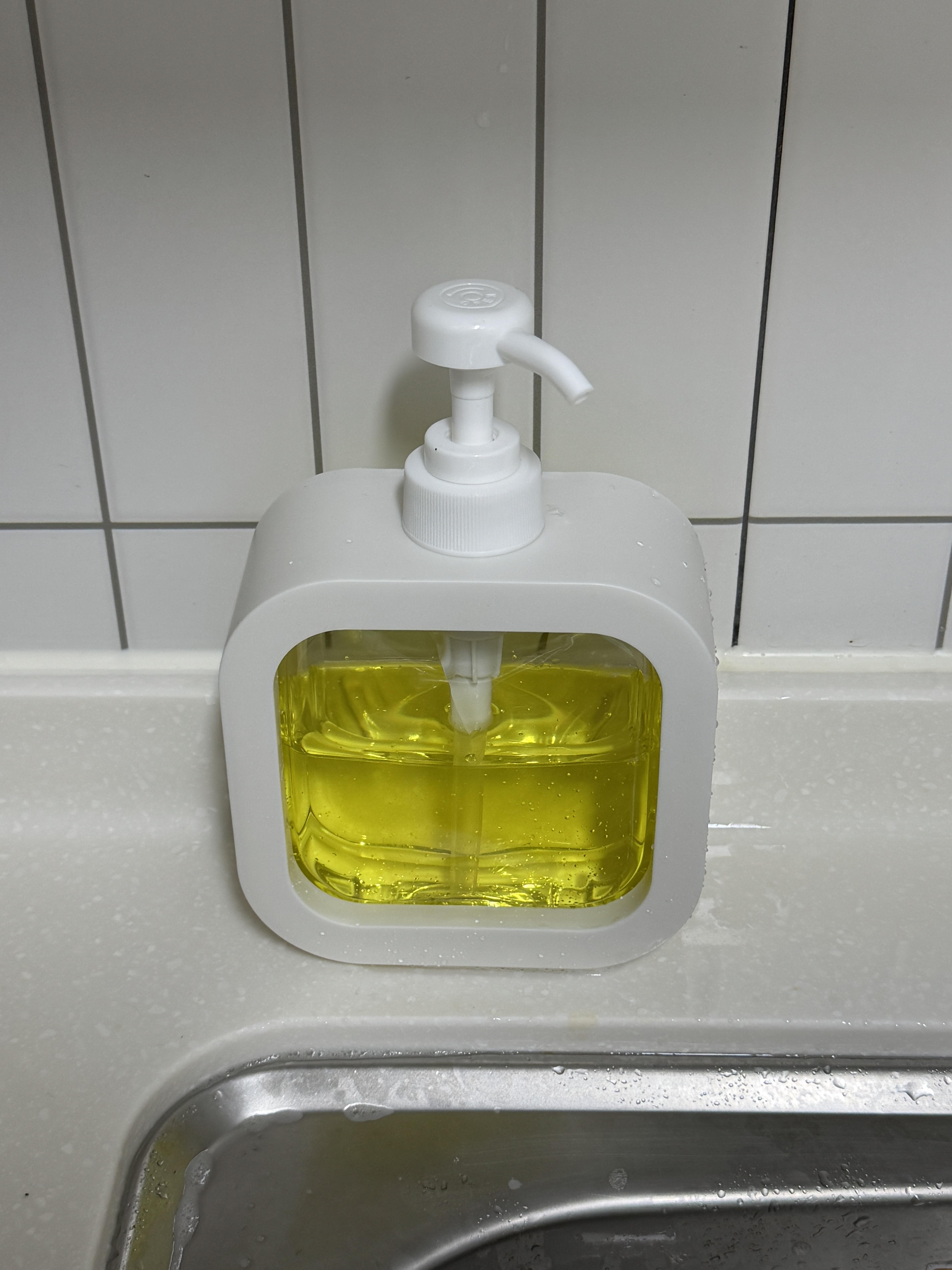 나는 이걸 비누 디스펜서가 아니라 주방세재 디스펜서로 쓰고 있다. 핸드 워시 디스펜서는 이런 거 말고 좀 괜찮은 걸로 따로 사서. 밥을 집에서 잘 안 해먹다 보니, 주방세재 쓰는 경우도 생각보다 많지 않아서 리필 사둔 거 아직까지도 다 못 쓰고 있는 실정.