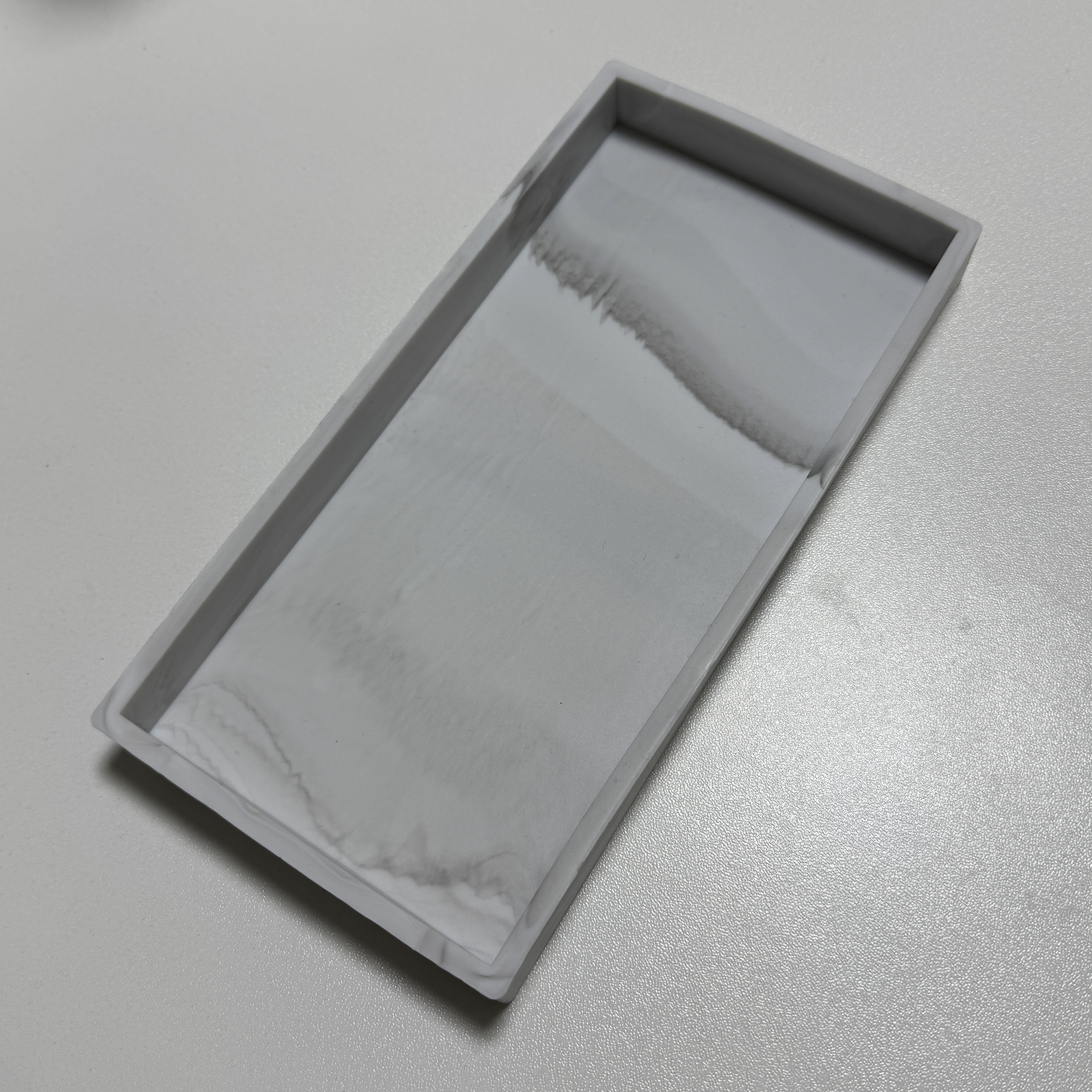 겉보기에는 대리석 느낌인데 실제로는 고무다. 뭐 제품명에는 실리콘 트레이라고 되어 있긴 한데, 나는 그걸 못 봤네. ㅎ 그냥 이것 저것 담고(워낙 가격들이 싸니까) 할인 혜택 받아서 사다 보니 이런 것도 사게 되었는데, 원래는 화장실에 사용할 목적으로 산 트레이인데, 오히려 깔끔하지 못한 거 같기도 하고 이게 크지가 않아서 몇 개 못 올려두더라.