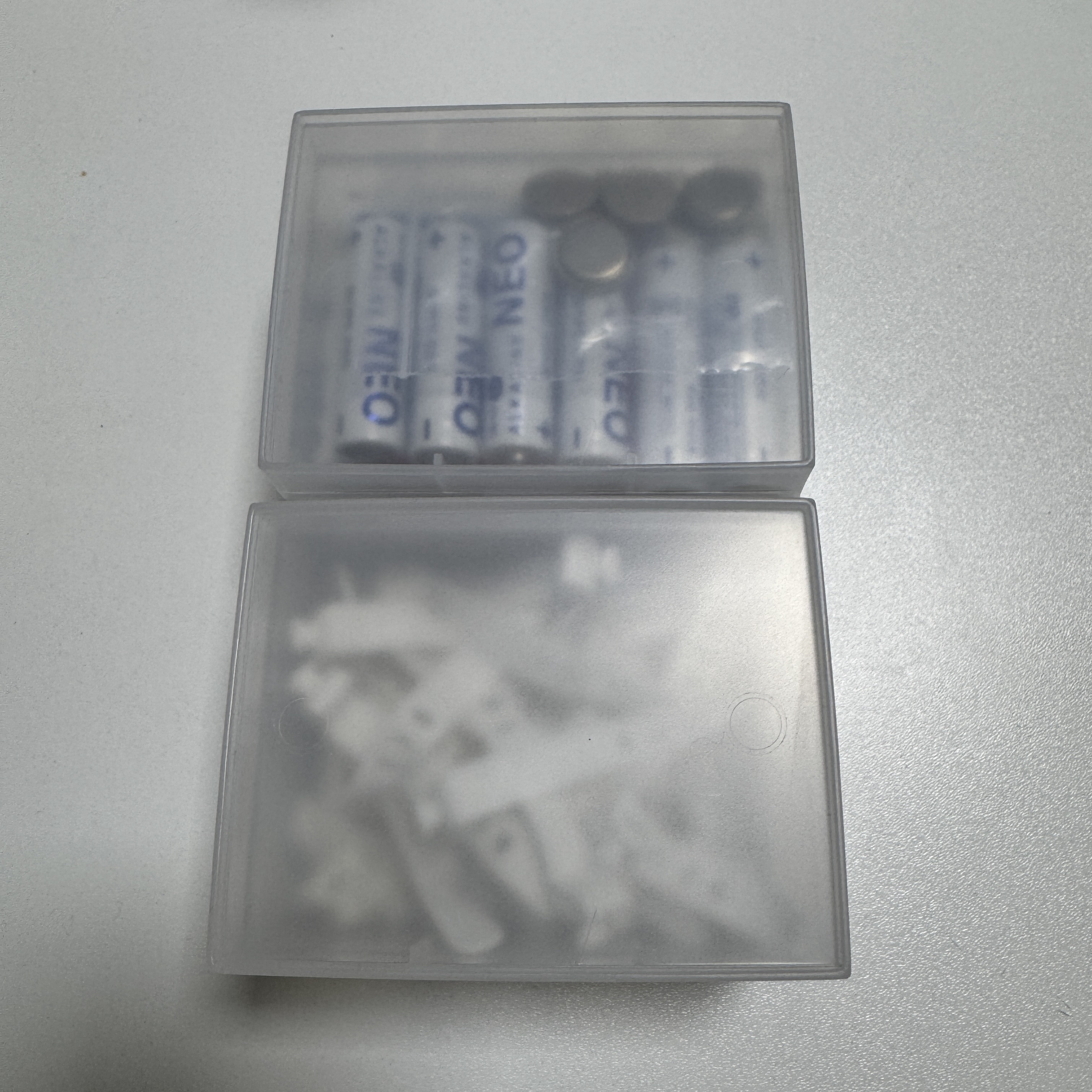 이건 다이소에서 산 거다. 다이소에 이런 보관함 종류 많은데, 이게 젤 디자인적으로 기능적으로 나은 거 같아서. 층층이 쌓을 수 있고, 안에 내용물이 보이긴 하지만 불투명하고.