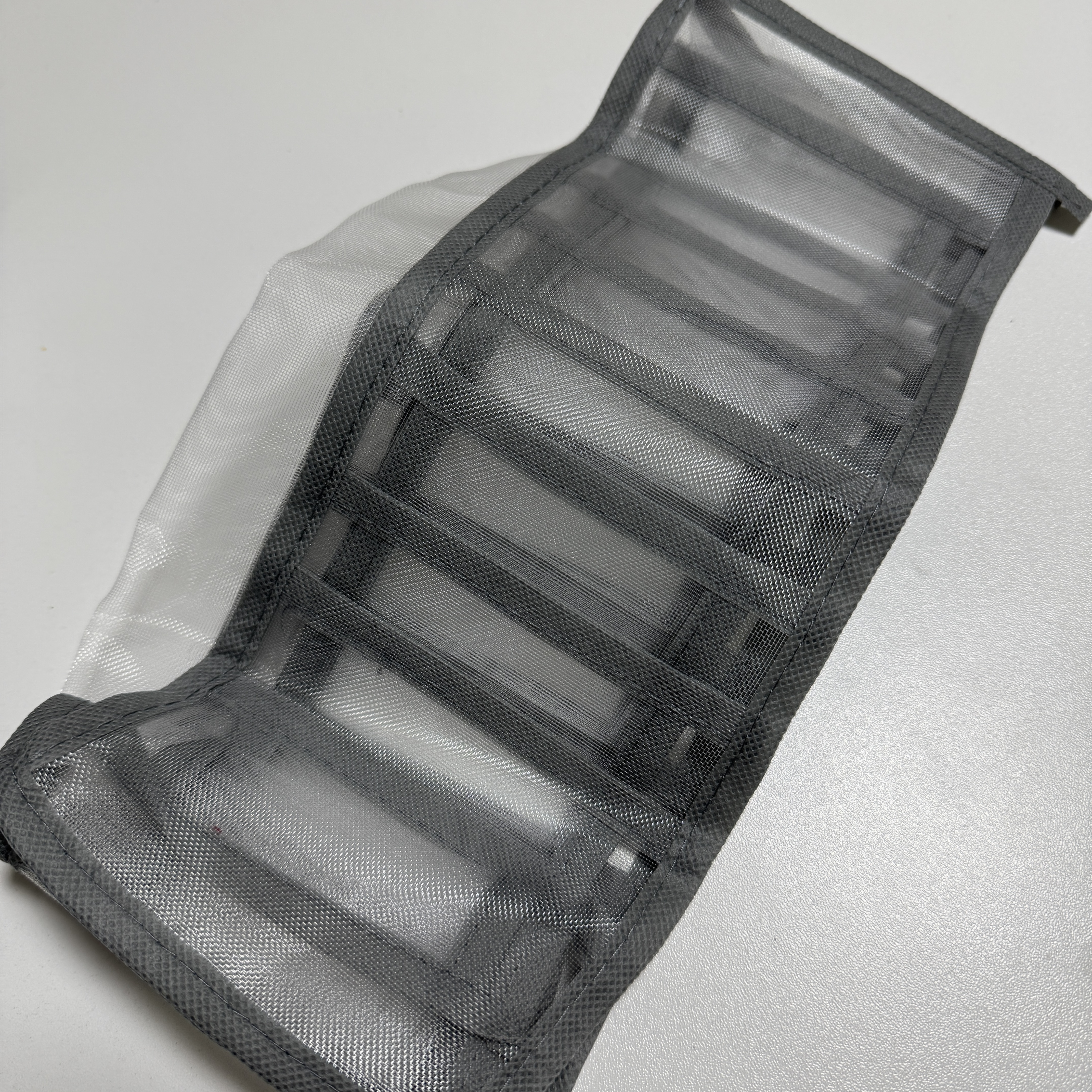 색상은 화이트, 그레이, 블랙이 있는데, 나는 그레이로 선택. 가로 12cm, 세로 32cm, 높이 12cm. 칸은 11칸이고, 각 칸의 폭은 2.5cm다. 속옷 정리함은 가로 17cm, 세로 36cm, 높이 12cm. 칸은 7칸이고 각 칸의 폭은 5cm. 재질이 그래서 그렇긴 한데, 뭐 그래도 없는 거 보단 낫다만, 아무래도 나중에는 좀 다른 걸로 사지 않을까 하는 생각이...