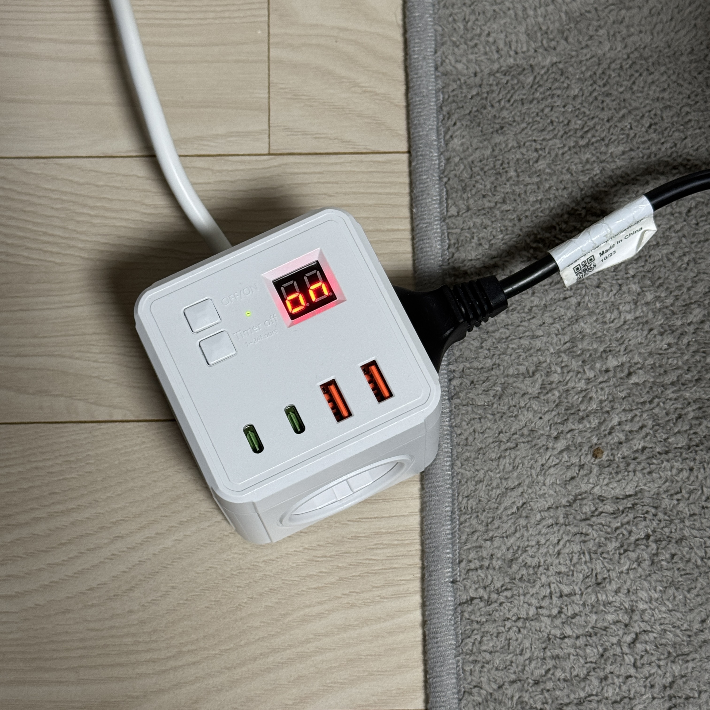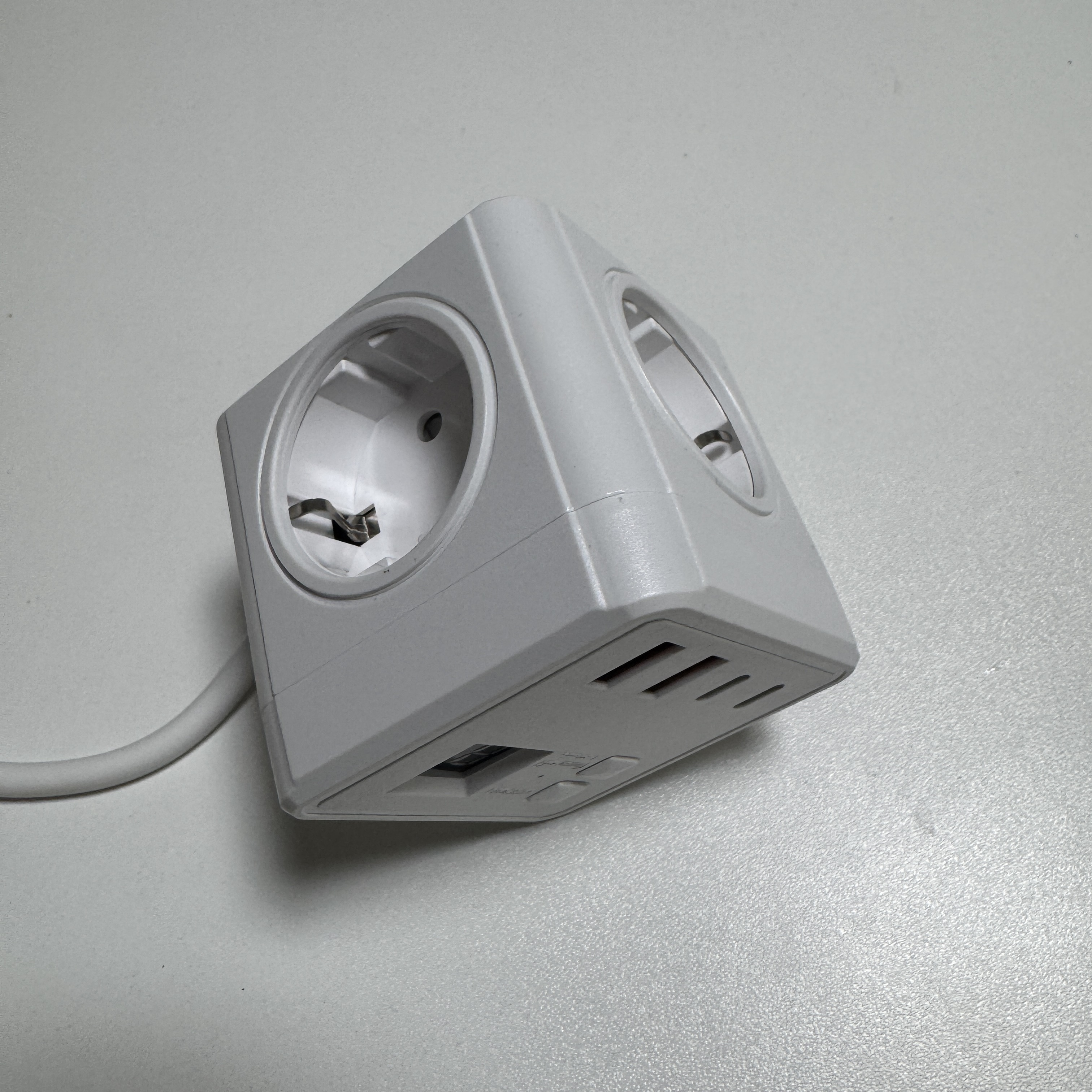 멀티 콘센트인데, 공간을 많이 차지하지 않는다. 파워선은 3개 꽂을 수 있고, USB-A는 2개, USB-C는 2개. USB-A나 USB-C는 10.5W가 최대다. 그래서 고속충전은 안 되지만 그래도 뭐 괜찮.