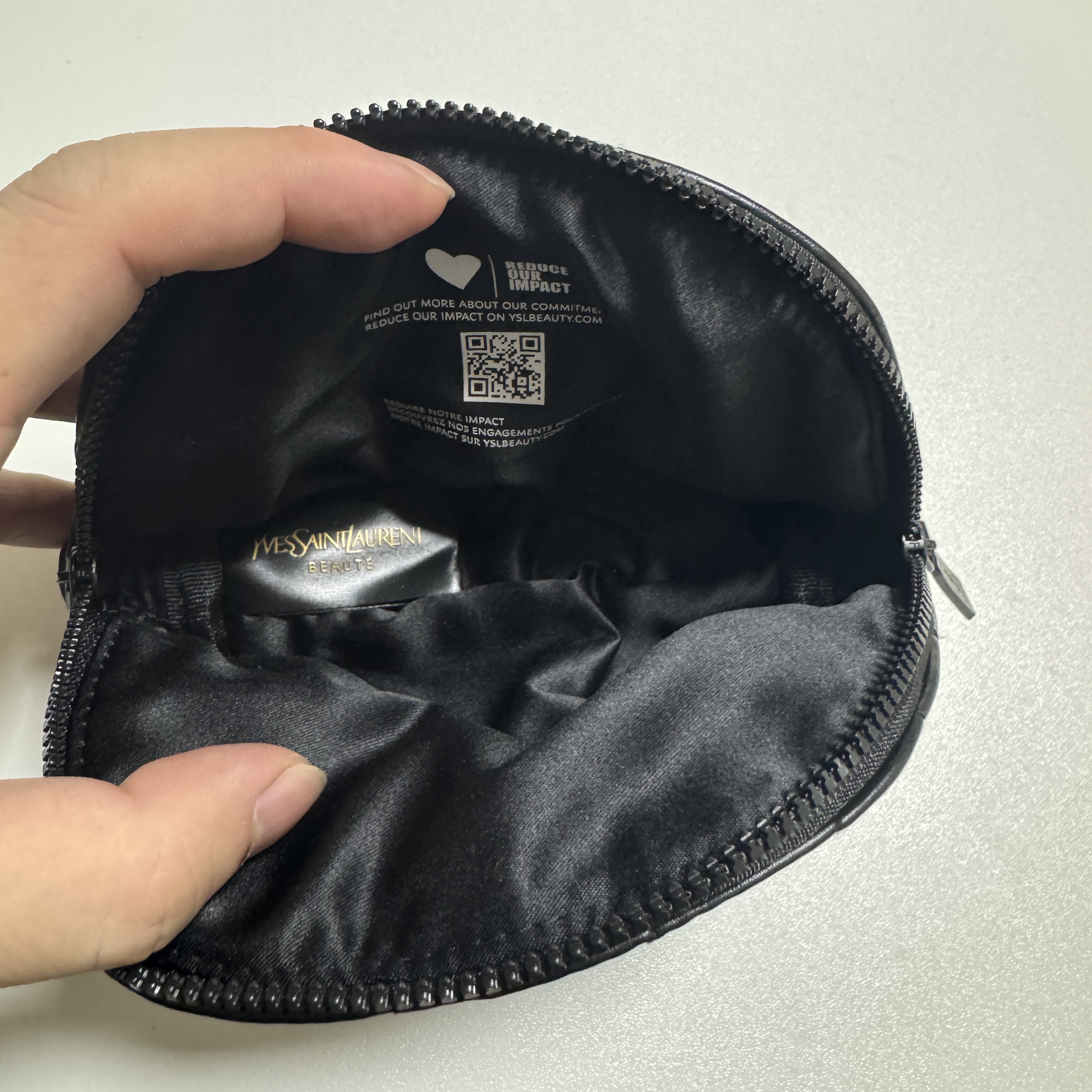 이건 선물 받은 거다. 지인이 입생로랑에서 뭐 살 때 그냥 받은 파우치인데, 자기 파우치 많다고 나보고 쓰라고 준 건데, 난 필요없다 했더니만 내 차 보조석 수납함에 넣어뒀나 보더라. 어느 날 열어보니 있대?