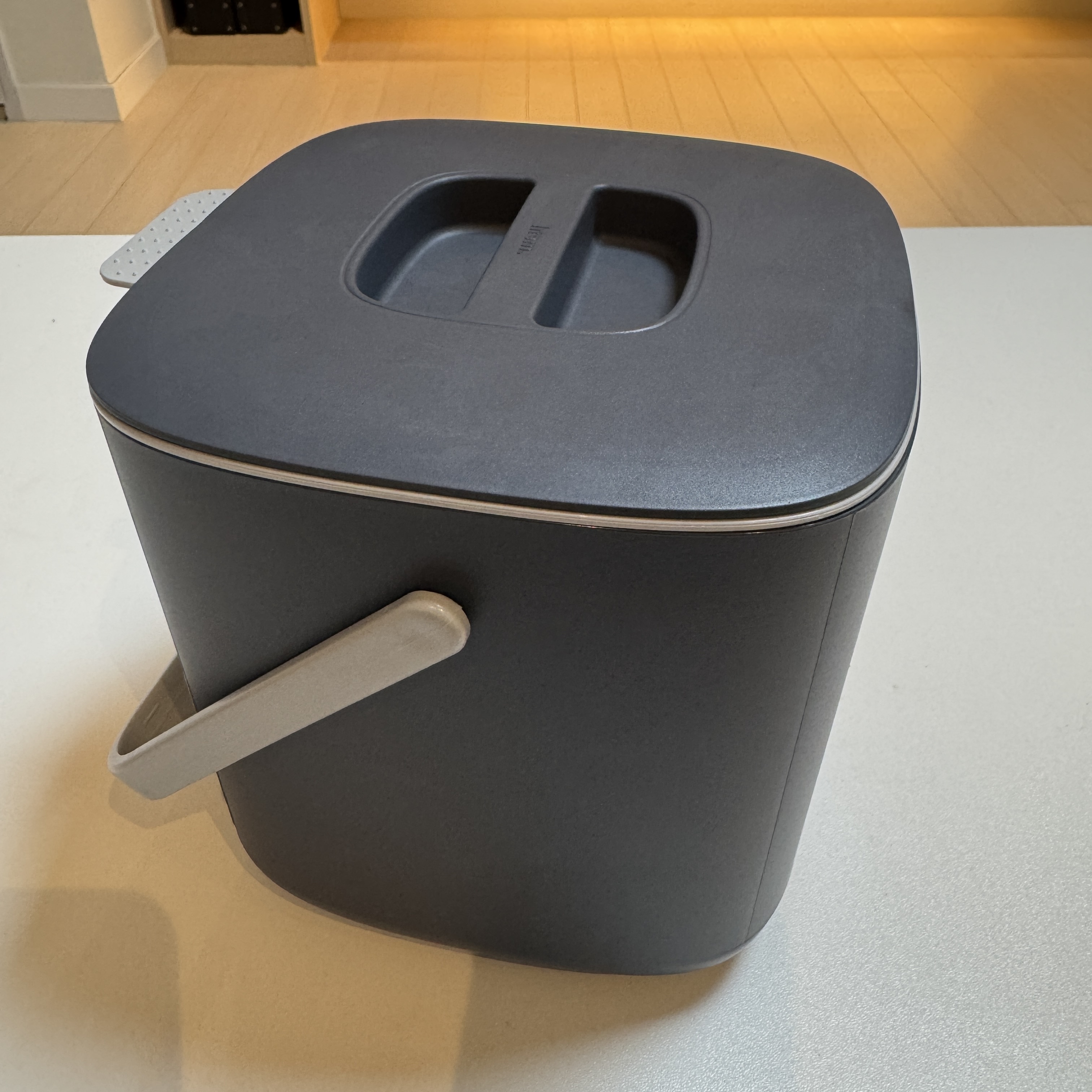 원래 쓰던 음식물 쓰레기통은 원래 살던 데에 놔두고 와서(바꾸려고 했으니) 새로 구매. 좋은 음식물 쓰레기통도 많긴 한데, 내가 집에서 밥을 잘 안 해먹다 보니 큰 게 필요가 없고, 음식물 쓰레기 봉투도 2L 짜리로 사서 작은 음식물 쓰레기통 중에는 괜찮은 게 없더라. 대부분 플라스틱 재질이고. 그래서 그 중에서 그래도 디자인 괜찮은 거(난 원통형은 싫어서, 기존에 쓰던 게 원통형이었던 지라) 골랐다. 근데 이게 2.6L네. 그래서 2L 음식물 쓰레기 봉투 넣으면 공간이 남는다. 담에는 좀 더 큰 음식물 쓰레기 봉투를 사야할 듯.