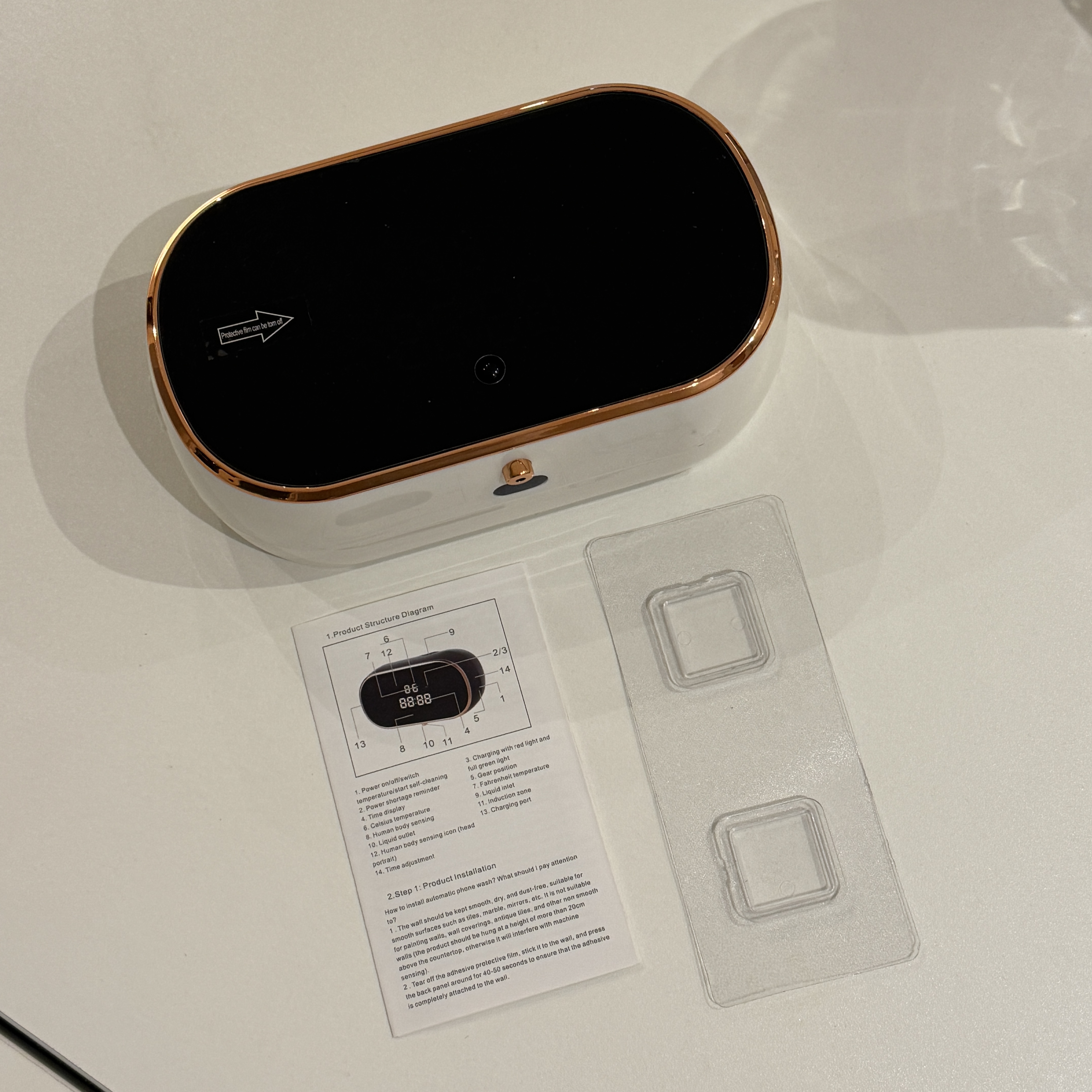 오른쪽에 파워 버튼 누르면 작동 시작. 처음에는 핸드 워시가 잘 안 나온다. 이럴 땐 Gear를 높여서 많이 오래 나오게 했다가 잘 나오게 되면 그 때 Gear를 낮추면 됨. 기어는 파워 버튼 누르면 바뀐다. 날짜 설정이나 그런 건 매뉴얼 보면 되고, 매뉴얼 안 봐도 버튼 두 개라 이리 저리 하다 보면 할 수 있음. 온도까지 표시되고, 배터리 잔여량까지 표시되고 깔끔해서 좋다. 별도의 건전지는 필요없고, 충전해서 사용하는 식. 이건 잘 산 거 같다. 24,415원 ㅎ