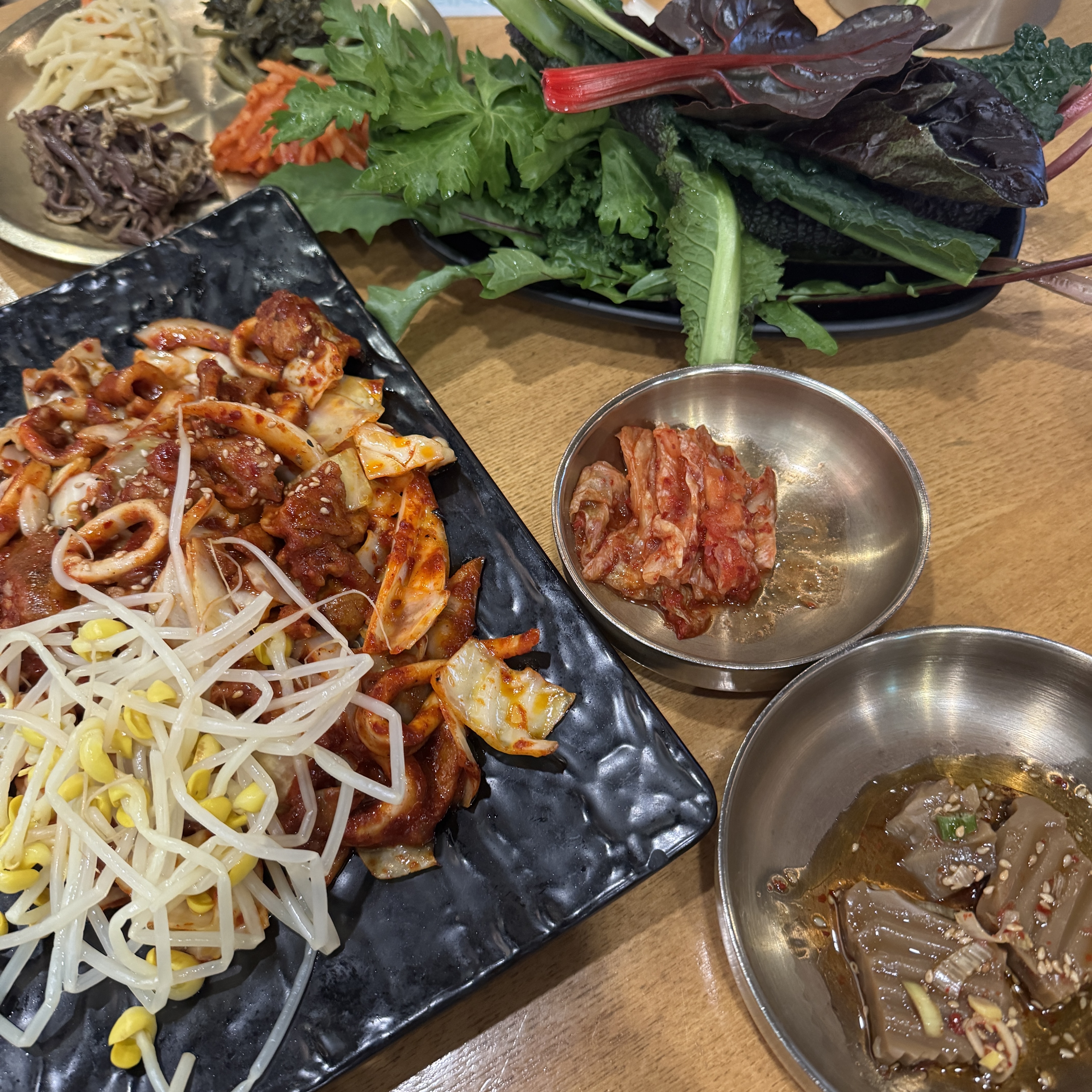 시킨 쌈밥은 제육쌈밥이랑 오징어쌈밥. 원래 2인분으로 시켜야 하는데, 제육쌈밥 1인분이랑, 오징어쌈밥 1인분이랑 해서 2인분 안 되냐니까 해주더라. 맛은? 내 입맛에는 좀 밋밋했다. 뭐랄까. 오징어에 양념이 잘 배어 있는 게 아니라 그냥 오징어맛 따로 양념맛 따로 그런 느낌? 양념도 그 맛이 진하지는 않고. 어찌보면 건강한 맛이라고 해야 하나? 근데 이게 나랑은 안 맞거든. 제육은 별로였고. 고기 맛은 내가 잘 알잖아? 별로임. 그래도 쌈이랑 해서 한 그릇 잘 먹긴 했다. 배고팠으니. 잘 먹어놓고 그러냐고 그럴 지 몰라도 배고파서 먹는 거랑 맛있는 거랑은 별개임.