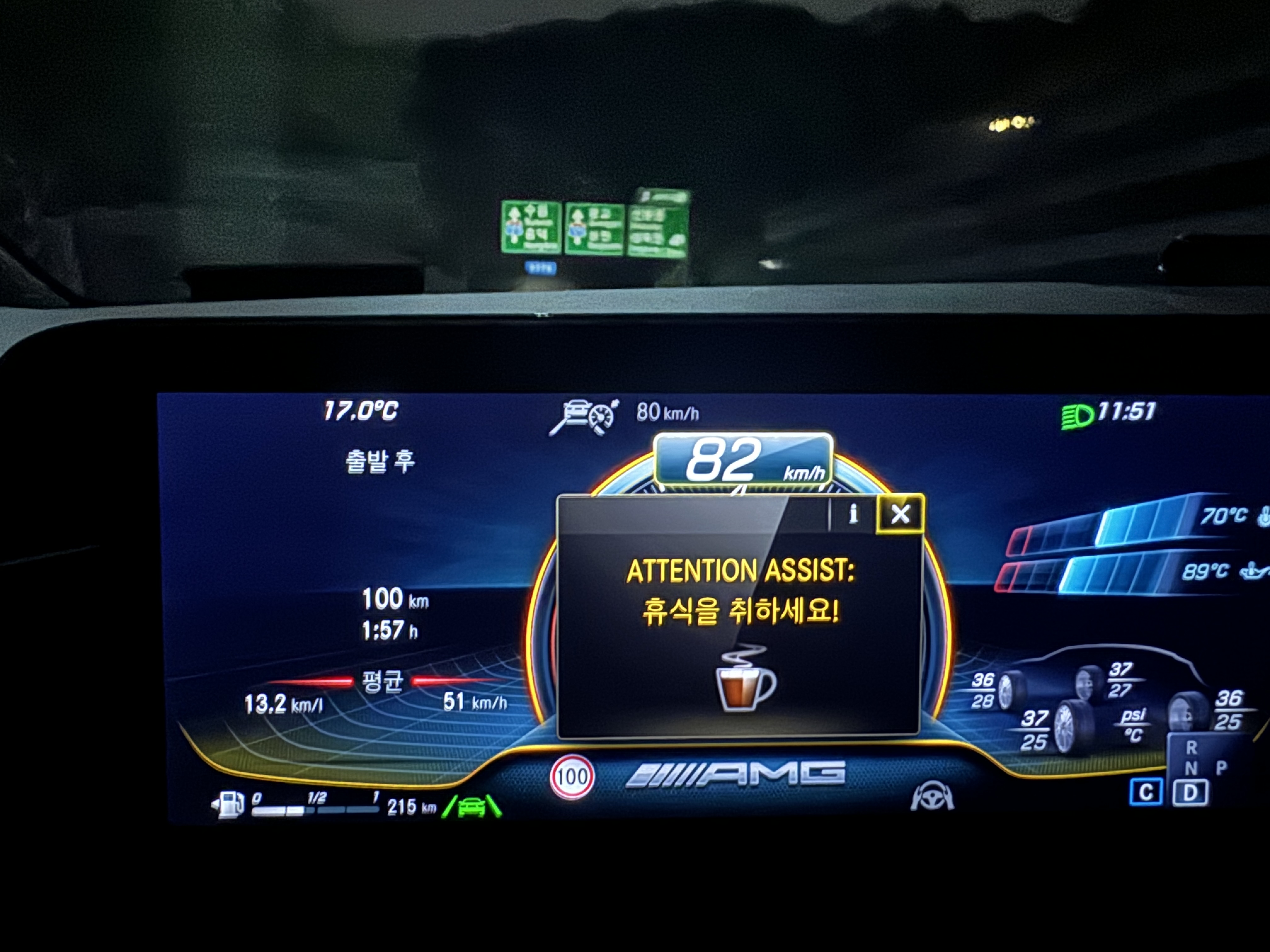 이런 기능이 있는 줄 몰랐다. 예전에도 한 번 겪었던 거 같기는 한데, 그 때는 캡쳐한 게 없어서. 게다가 이렇게 오래도록 운전만 하는 경우는 드물다 보니. 2시간 정도 내리 달렸더니 휴식을 취하란다. Attention Assist. 쓸데없는 기능이라 생각하긴 하지만 그래도 이런 알람이 뜨면 얼마나 달렸는지 시간도 보고 잠시 휴식을 취할 수도 있으니. 근데 나는 필요 없으니 이거 Off 해둬야겠다. 근데 어디서 Off 설정하는 거지?