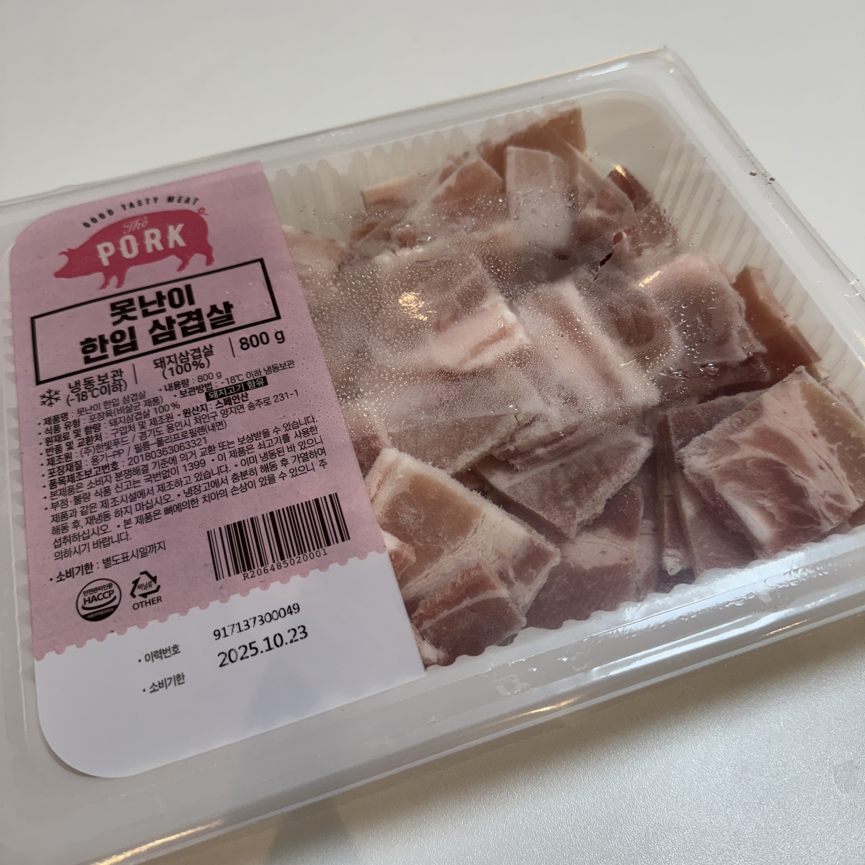 국민 음식인 삼겹살. 왠만하면 기본 이상은 하기 때문에 별 생각없이 쿠팡에서 못난이 한입 삼겹살을 샀다. 800g.