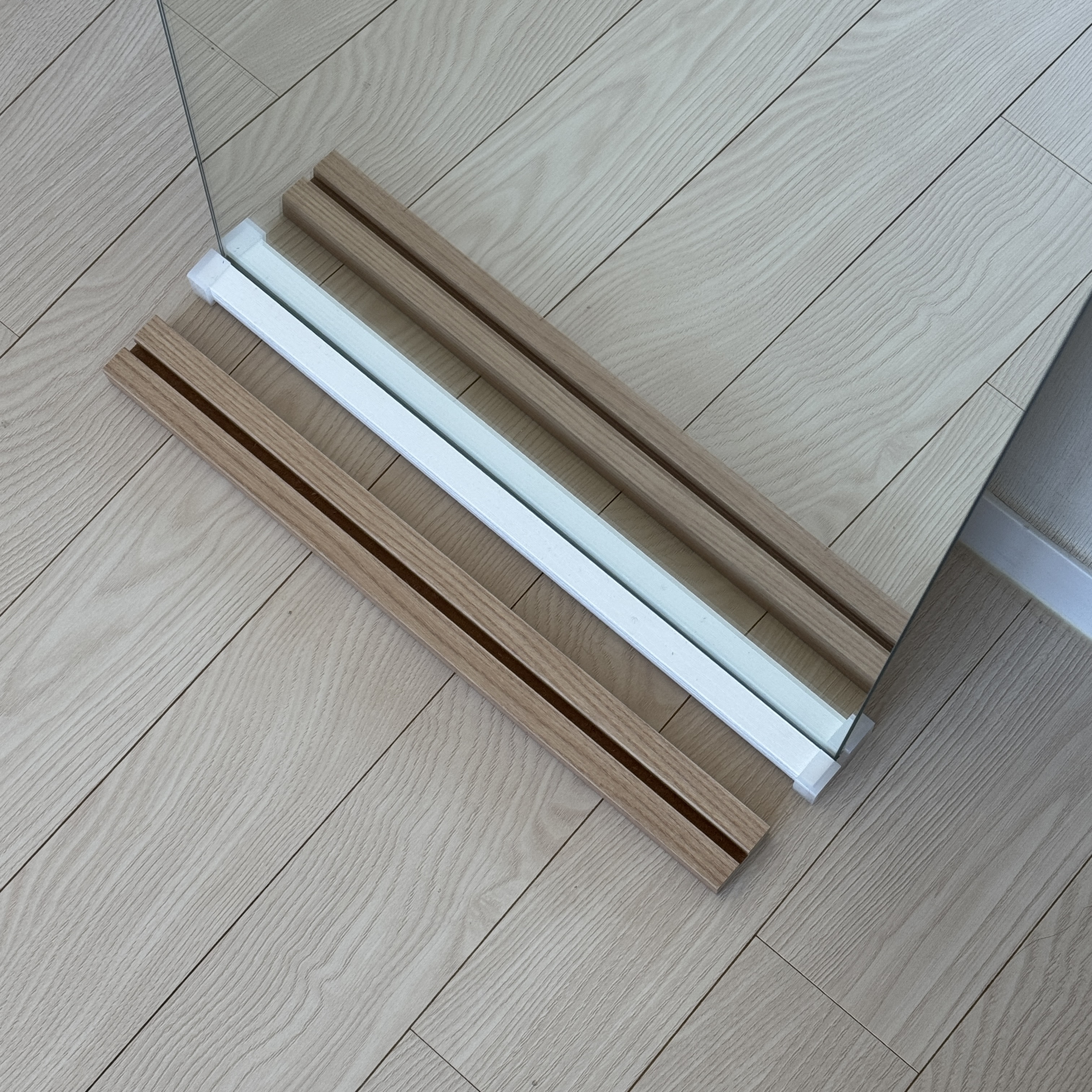 거울 거치대는 두 개를 주더라. 화이트랑 내츄럴. 끝부분에는 고무 패킹이 있어서 미끄러지지 않는다. 나는 화이트를 사용.