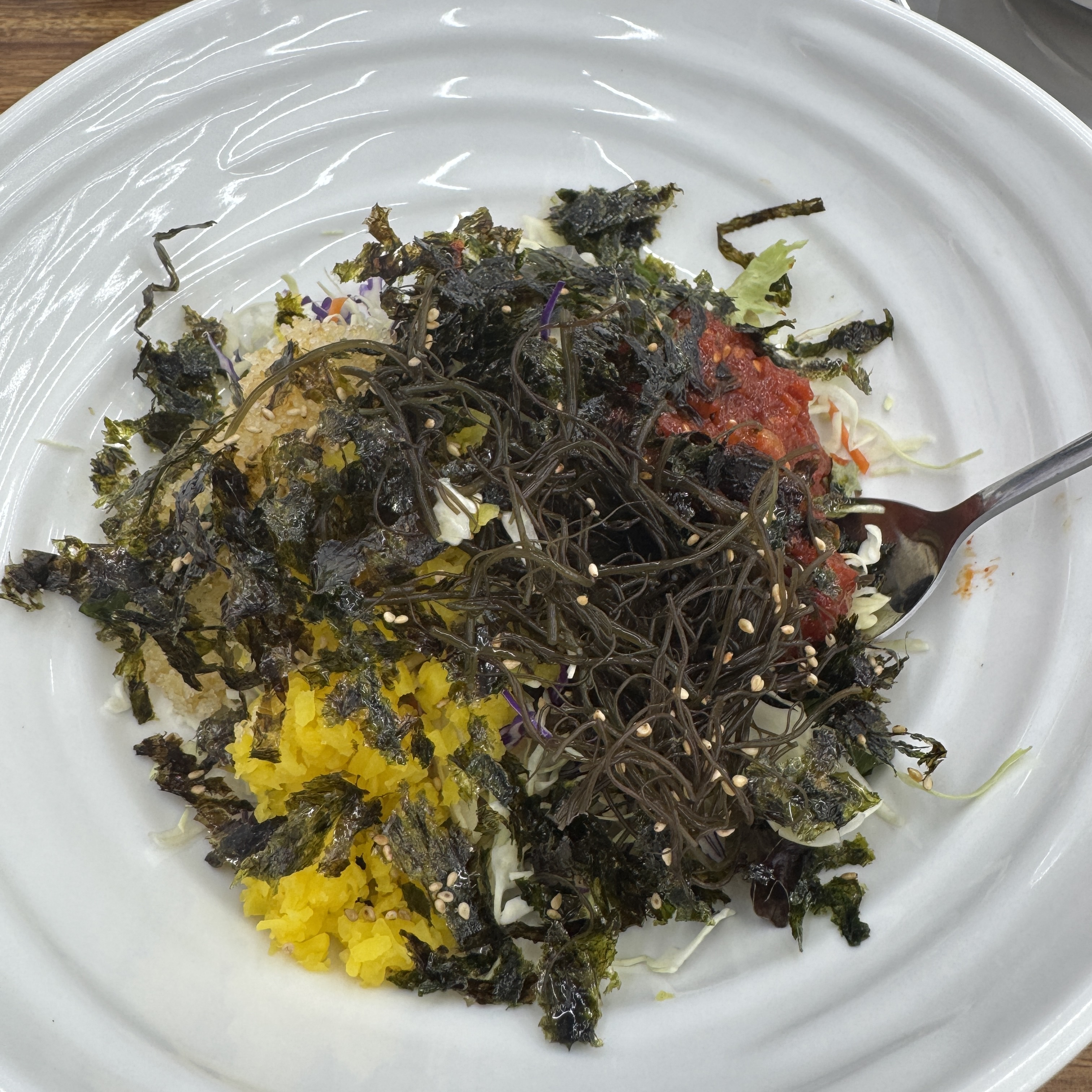 회사에 중식 제휴 업체로 추가되어서 가봤다. 항상 그렇듯 처음에는 신선해. 그러다 어느 순간이 되면 익숙해져서 식상해지고. 다 그런 거 아니겠어? 그래서 점심 때가 되면 오늘 뭐 먹지? 하는 고민을 하게 되고. 그러다 보니 새로 제휴된 데를 가게 되고. 그래서 가봤는데, 먹을 만한 메뉴가 몇 개 된다. 이번에 처음 가서는 먹은 건, 꽃게살비빔밥.