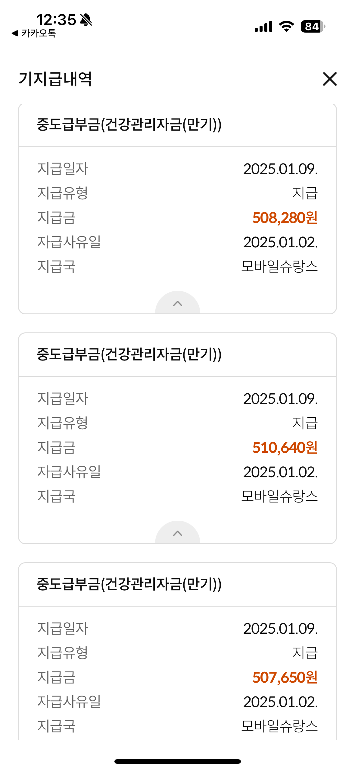생존급부금을 준다는 카톡. 그것도 150만원이나. 그래? 확인해봐야지 했는데, 이 카톡을 받았을 때는 발생일자인 25.01.02 전이라 잊고 있다가 생각나서 확인해봤다.