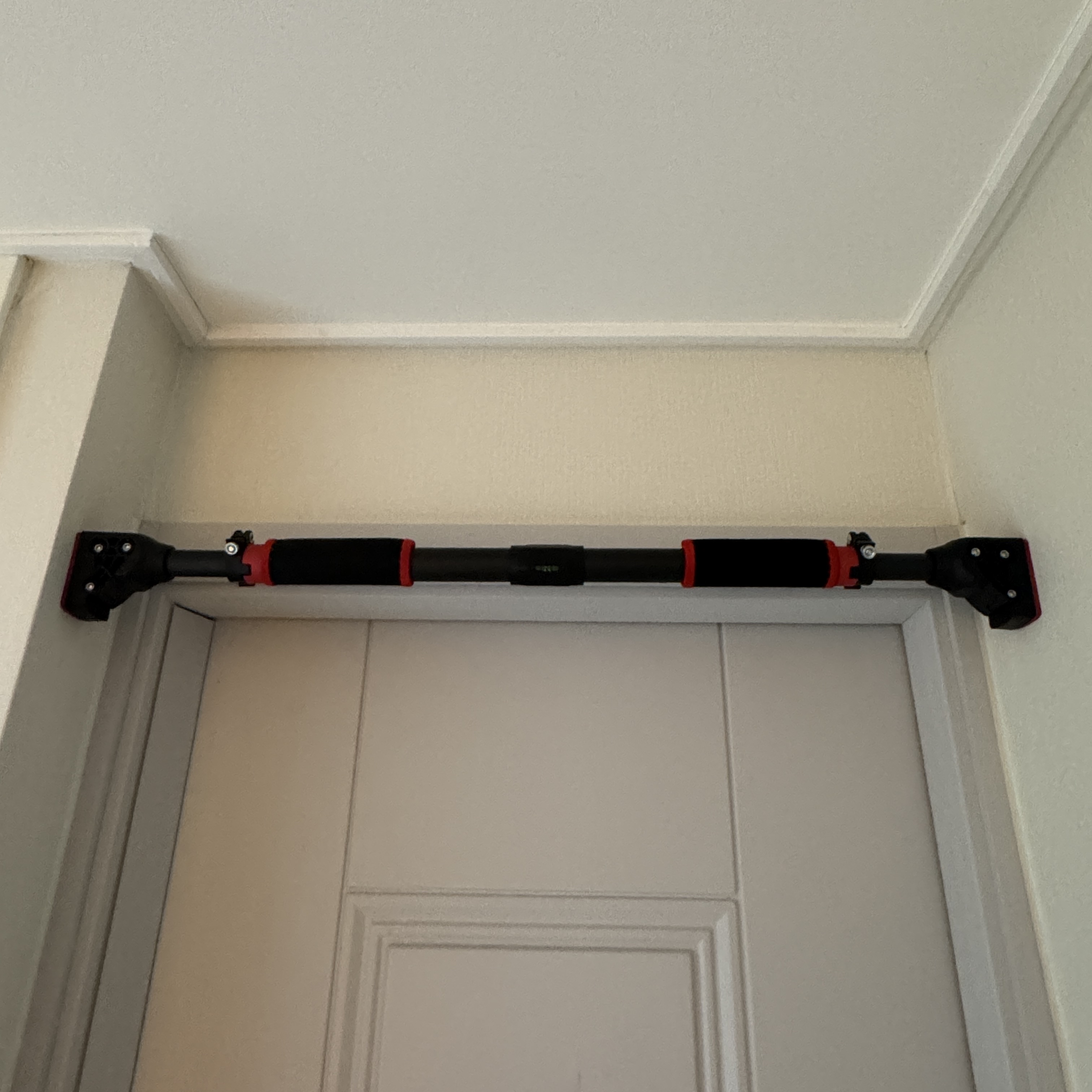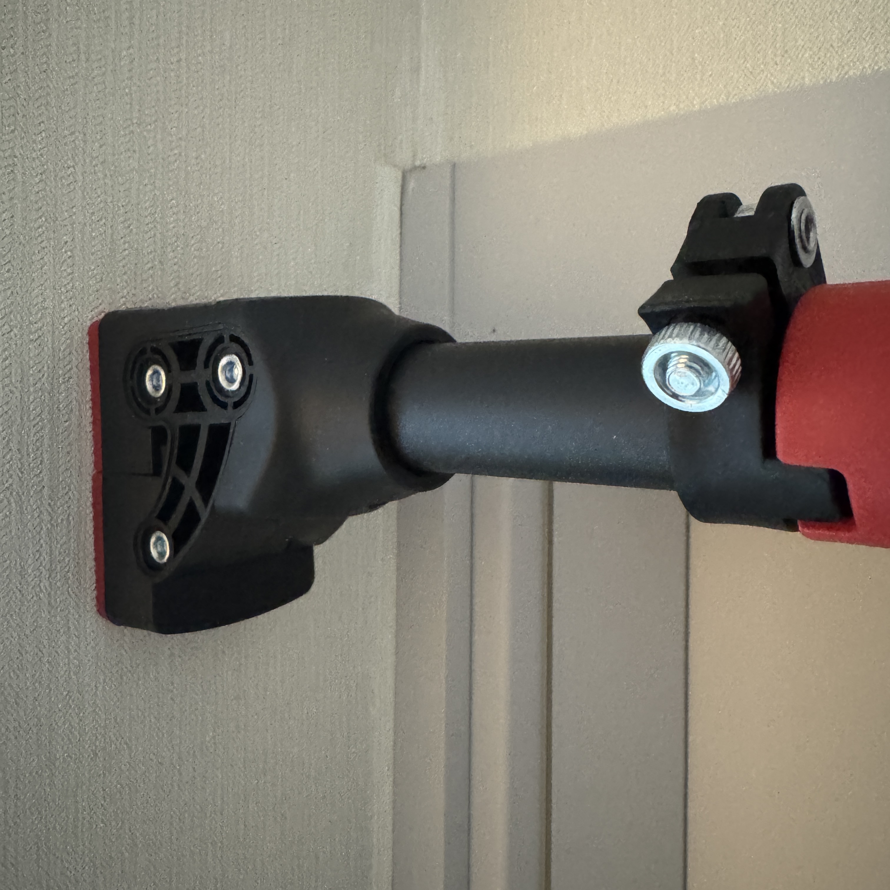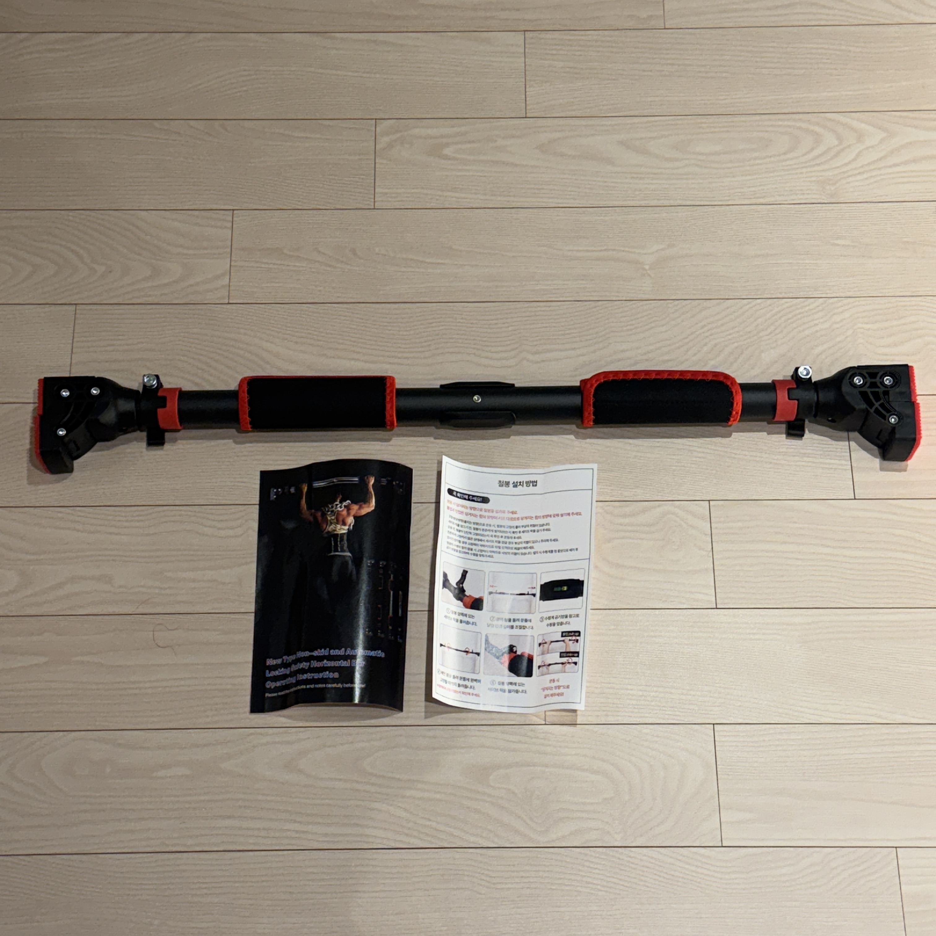 그리고는 중앙봉을 돌려서 단단하게 고정해주고, 락을 걸어주면 된다. 근데 풀업 시에 손을 어떻게 잡느냐에 따라 중앙봉 돌리는 방향을 맞춰줘야한다. 매뉴얼의 장착 방법에도 잘 나와 있지만, 일반적인 풀업이라고 하면 손바닥이 바깥쪽을 향하지만, 손바닥을 내 몸 방향으로 잡는다고 하면 이거 반대로 설치해야 돼. 이유가 마지막에 단단하게 고정할 때는 중앙봉을 돌려서 고정하는데, 고정하는 방향이 잡는 방향과 같아야 이게 고정이 해제되지 않거든. 자칫 잘못 장착하면 풀업하다가 떨어질 수 있을 듯.