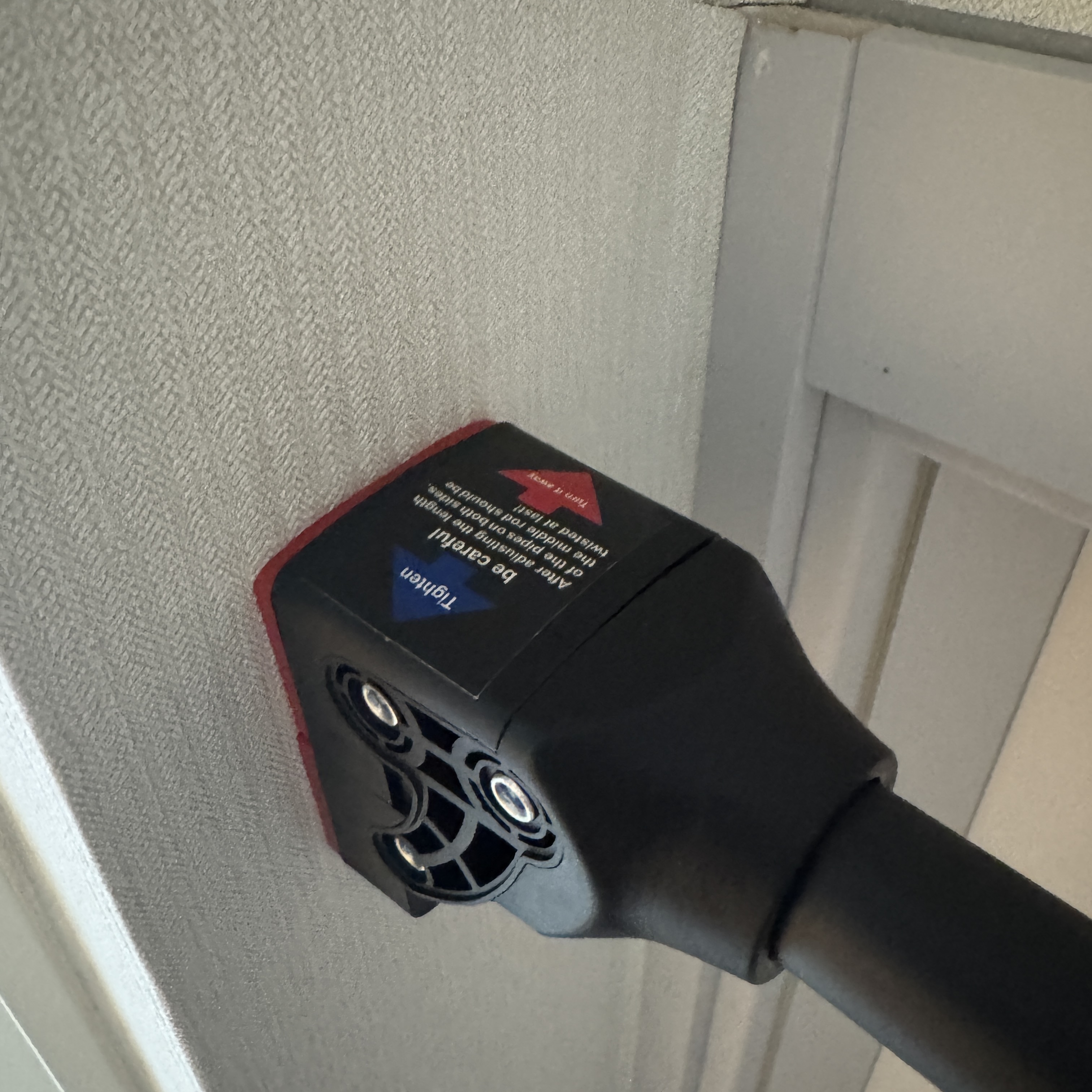 조이는 방향과 느슨하게 하는 방향이 있으니 이거 보고 돌려야 된다. 일단 문쪽이 아니라 벽에 고정시키는 거다 보니 좀 늘려야 해서 양쪽 돌리면서 늘려주고 적당한 위치를 설정.