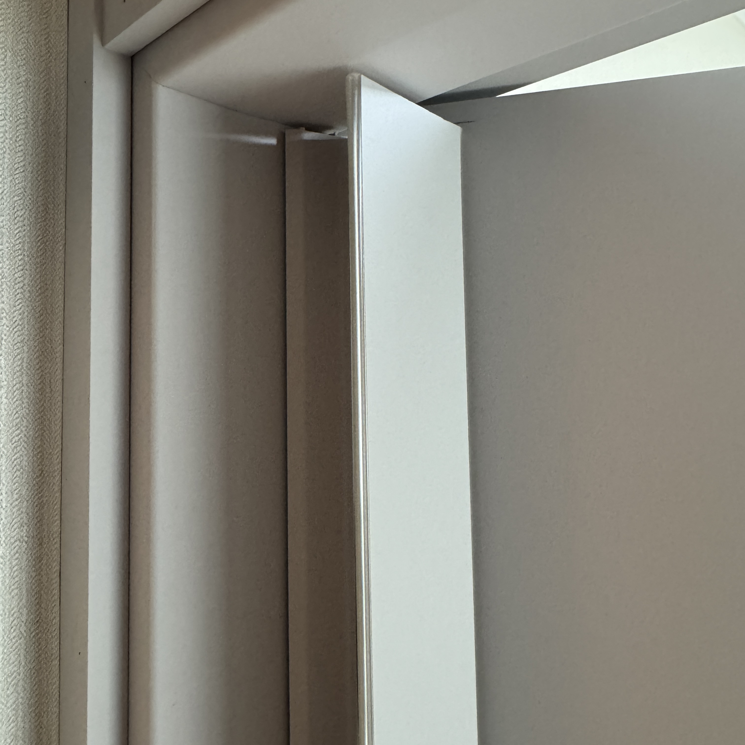 내가 사는 집 문은 이렇다. 그래서 문에 고정해서 장착할 수가 없게 되어 있어. 그래서 못 쓸 뻔했다. 그나마 다행인 건, 옷방 가는 쪽에 양쪽 벽 너비가 짧은 편이라 여기다가 설치.