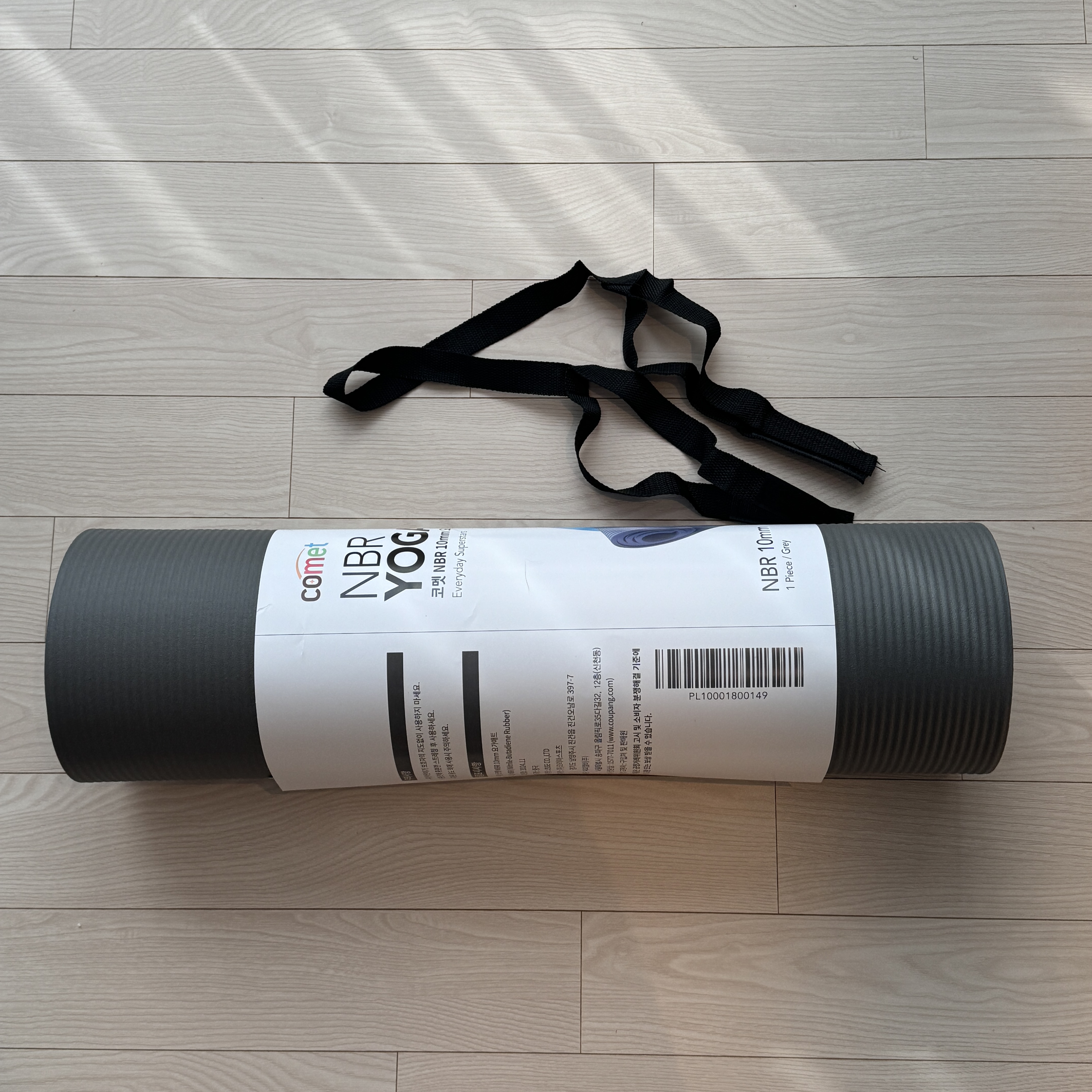내가 산 거는 코멧 NBR 10mm다. 색상은 당연히 내가 좋아하는 그레이. 가격은 8,810원. 쿠팡에 보면 요가매트도 비싼 것들이 있는데, 가늠이 안 되더라. 요가매트를 써봤어야지. 물론 헬스장이나 그런 데서 사용해보긴 했지만 신경 써서 본 건 아니다 보니 어떤 걸 사야할 지 모르겠더라고. 이거 재질은 합성고무던데, 좋은 재질이 아닌가? 싶지만 제품 상세 페이지에는 유해물질 테스트 완료했다고 하고 그러니 일단 가성비 좋은 이 제품을 선택했다.