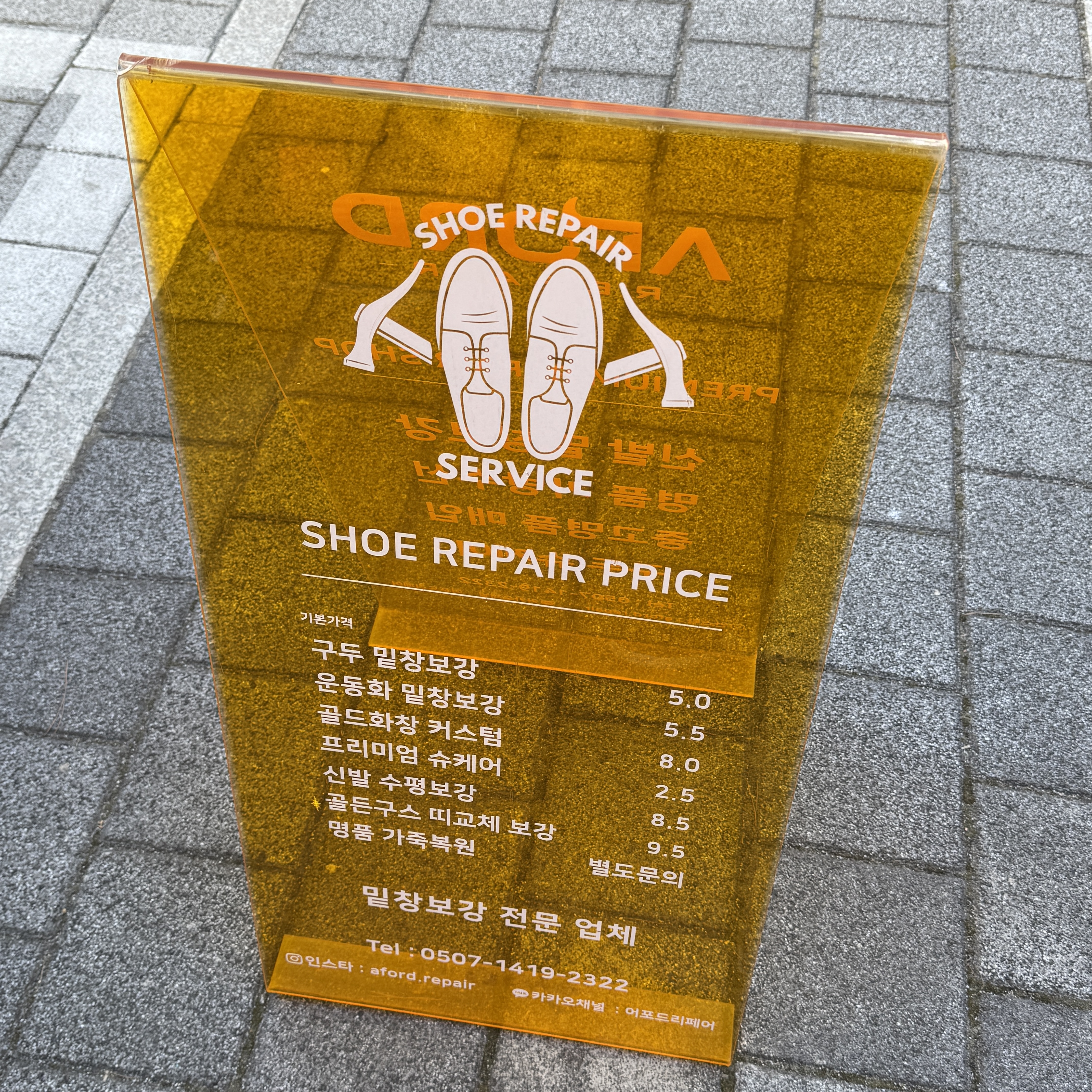 여기 가격표다. 집 가까이에 있으니 반가울 따름. 어떻게 수선되나 궁금하네.
