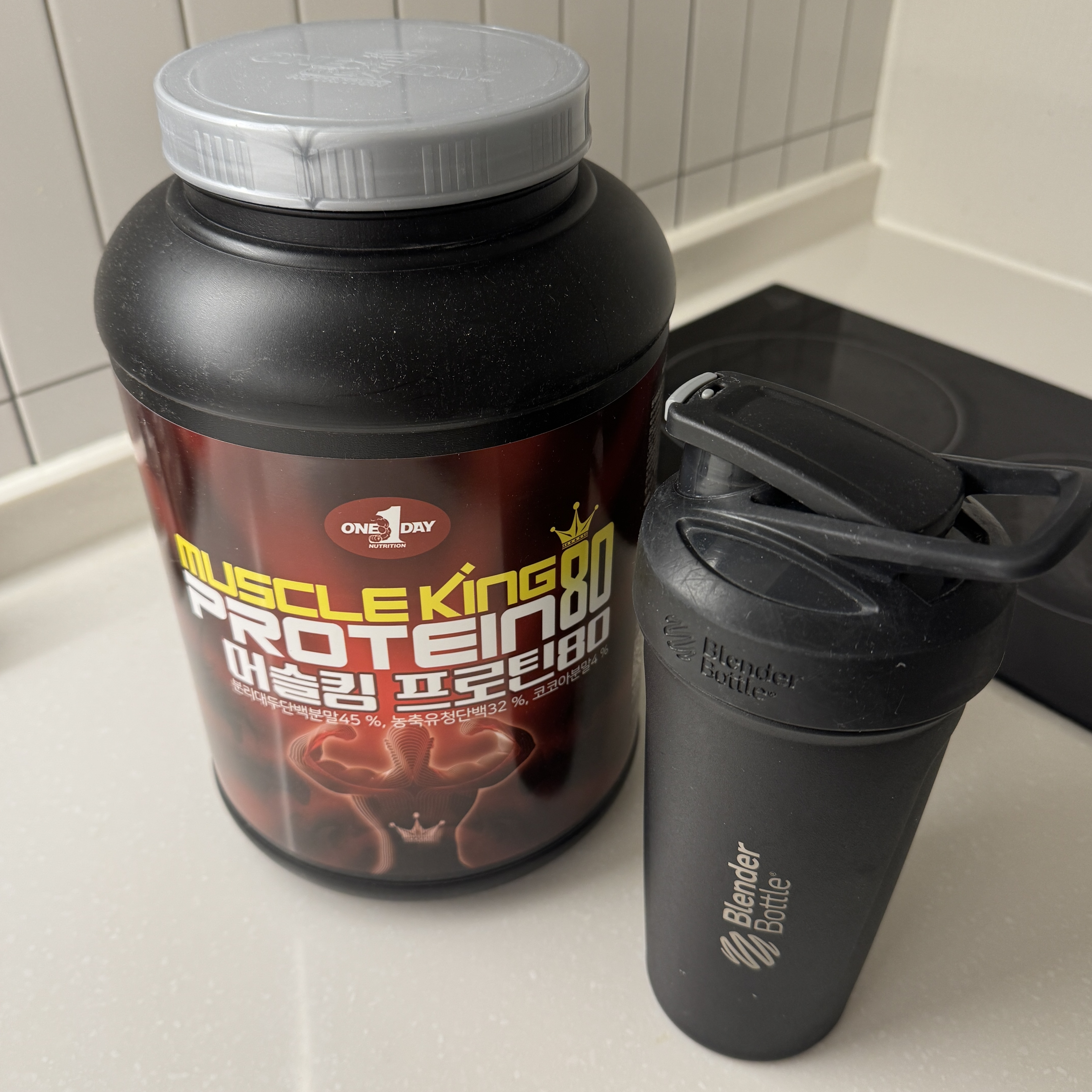 원데이뉴트리션 머슬킹 80. 이게 좋은 건지 안 따져봤다. 그냥 쿠팡에서 많이 팔리고 싸길래 주문했을 뿐. 사서 블렌더 보틀에 덜어 먹어보았는데 물에 타먹어서 그런지 초코맛이 그리 강하지는 않더라. 오히려 미숫가루 맛 같은 느낌. 좀 맛있는 거 사려고 했는데 이 부분은 좀 아쉽. 우유에 타먹어보면 다를라나?