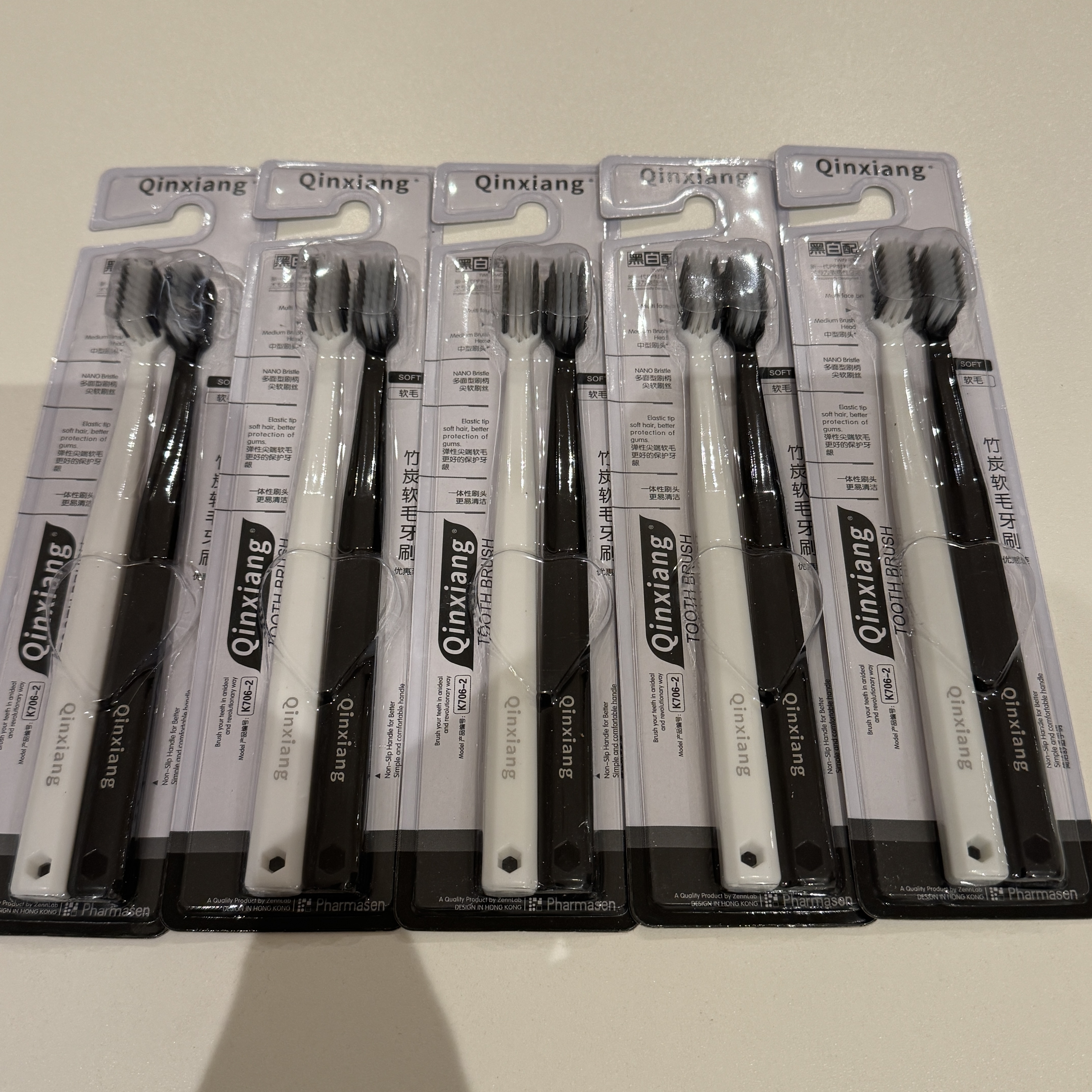 마카롱 칫솔을 테무에서 작년 초에 사고 1년이 지나 다 사용해서(칫솔은 3개월 주기 교체) 이번엔 알리에서 대나무 숯 강모 칫솔을 샀다. 대나무 숯이라고는 해도 대나무로 만들어진 건 아니고, 플라스틱으로 만든 거다. 그냥 디자인 나쁘지 않은 거 같아서. 지난 번 테무에서 샀던 마카롱 칫솔은 폭이 좁아서 좀 작다는 느낌이라 이번에 이걸로 택한 거다. 색상도 블랙 앤 화이트라. 가격은 1,681원. 10개니까 하나당 170원 꼴이다.