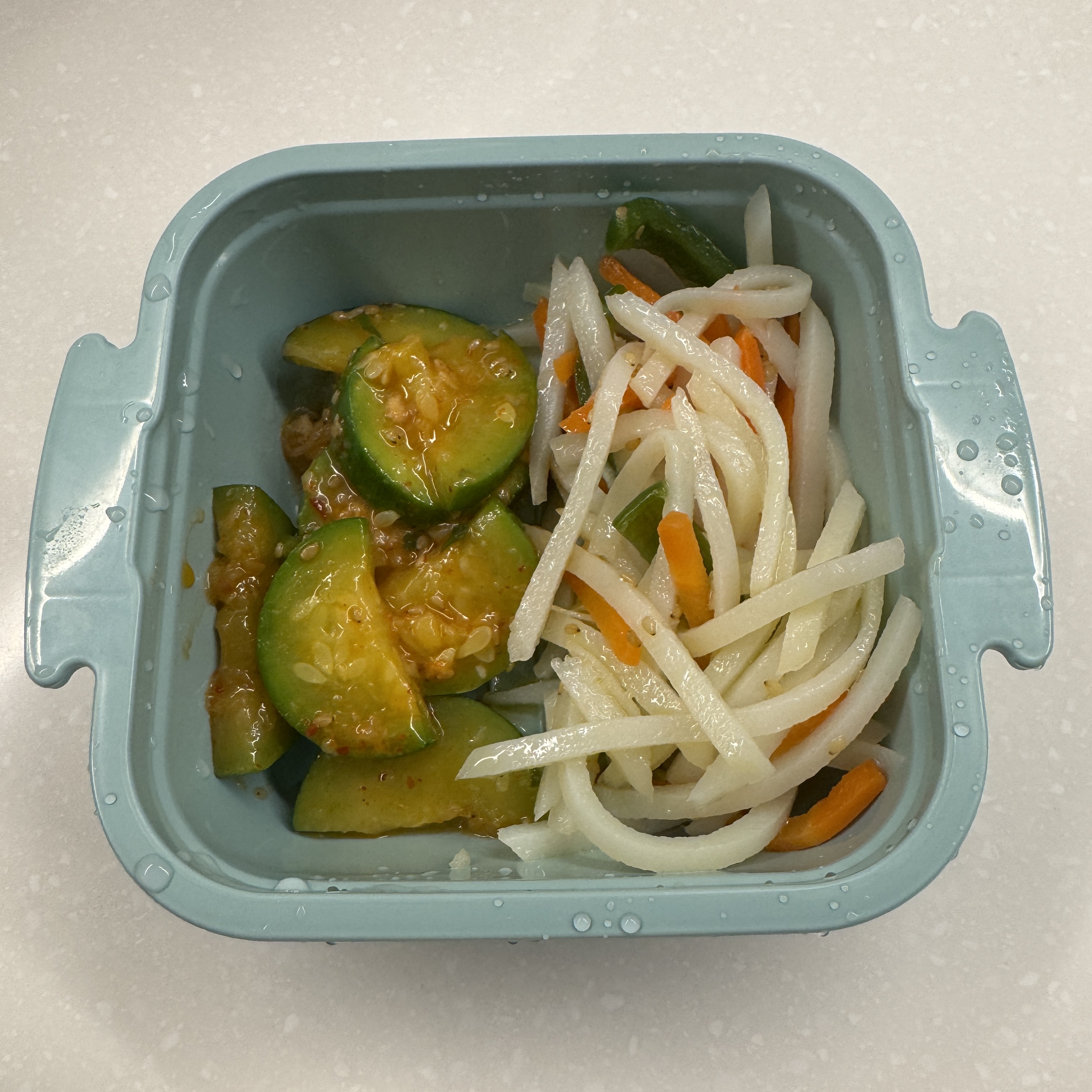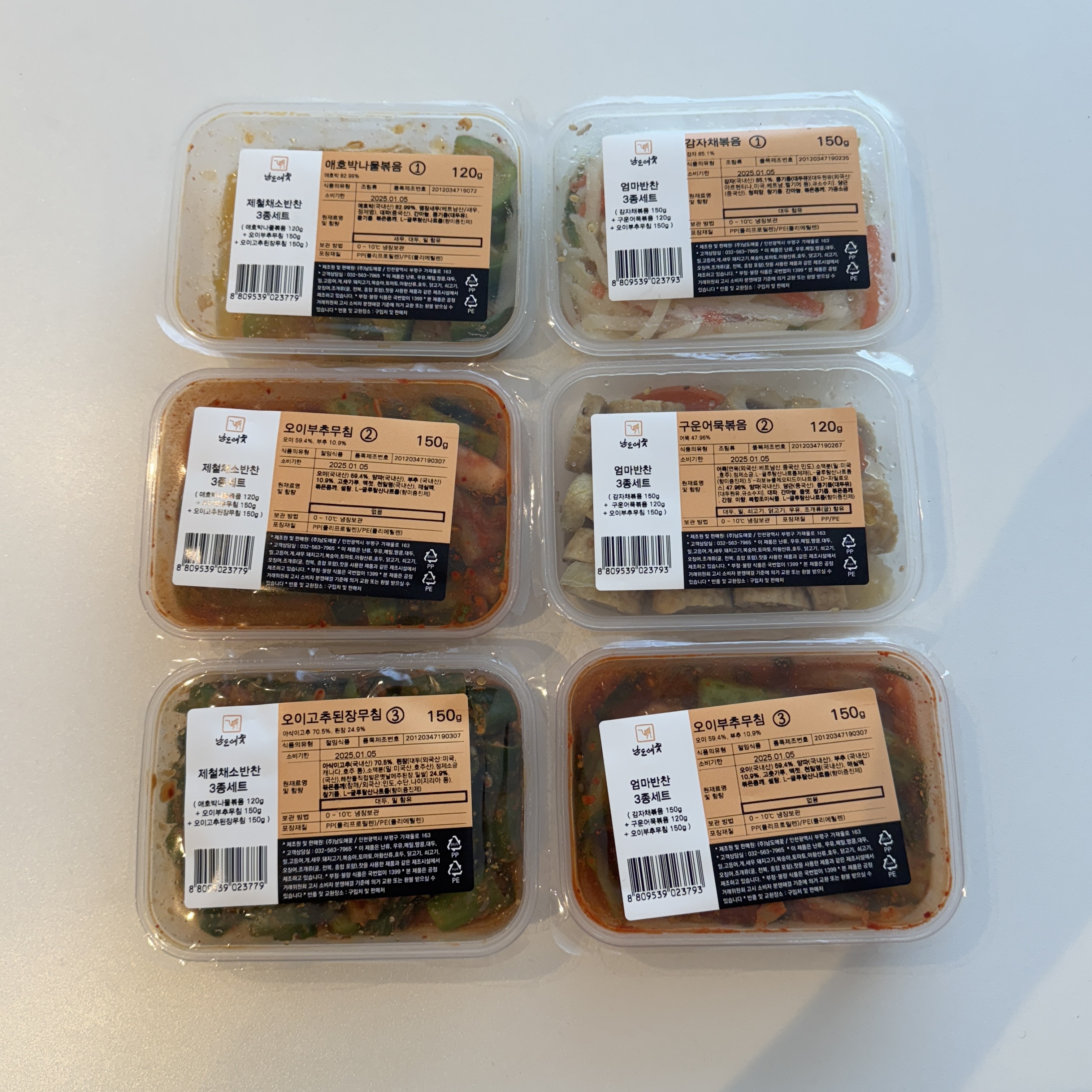 모두의 집밥 반찬을 사먹어보고 괜찮아서 다른 걸 시켜봤다. 모두의 집밥 반찬이 다양하긴 해도 또 없는 것도 있고 해서. 이번엔 남도애꽃 반찬인데, 퀄리티는 모두의 집밥이랑 크게 차이가 없더라. 두 세트를 샀는데, 이유는 1세트에 3개씩만 있어서.