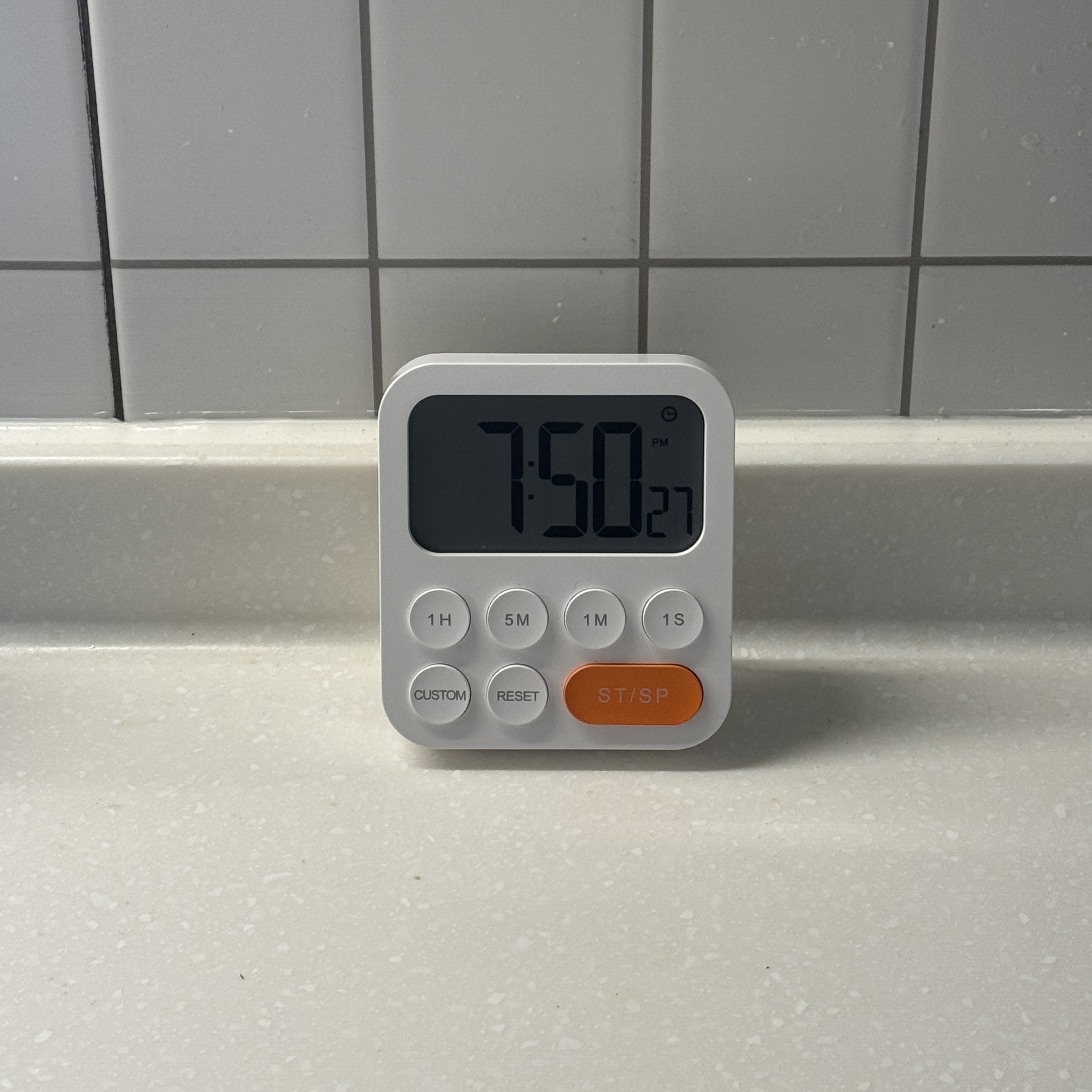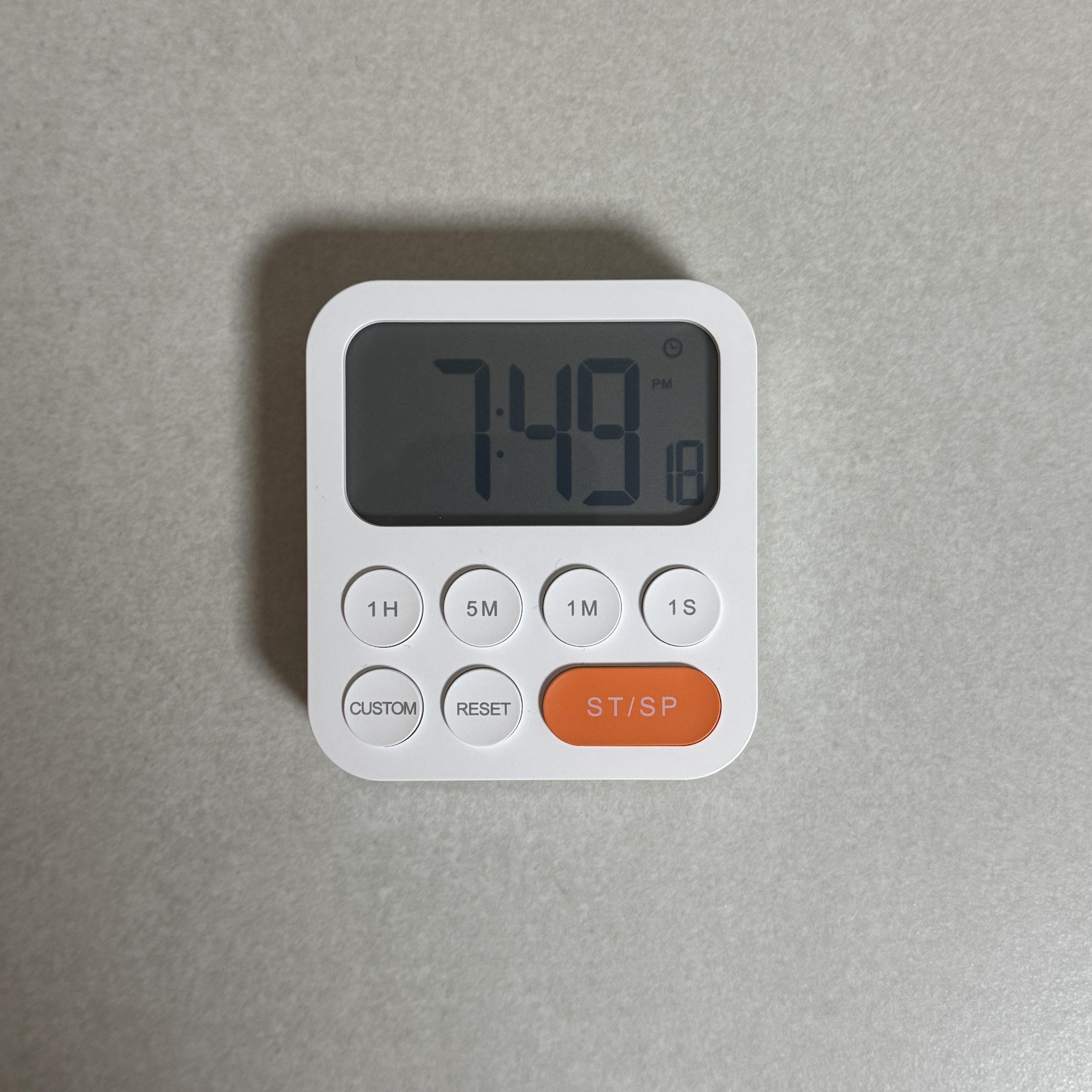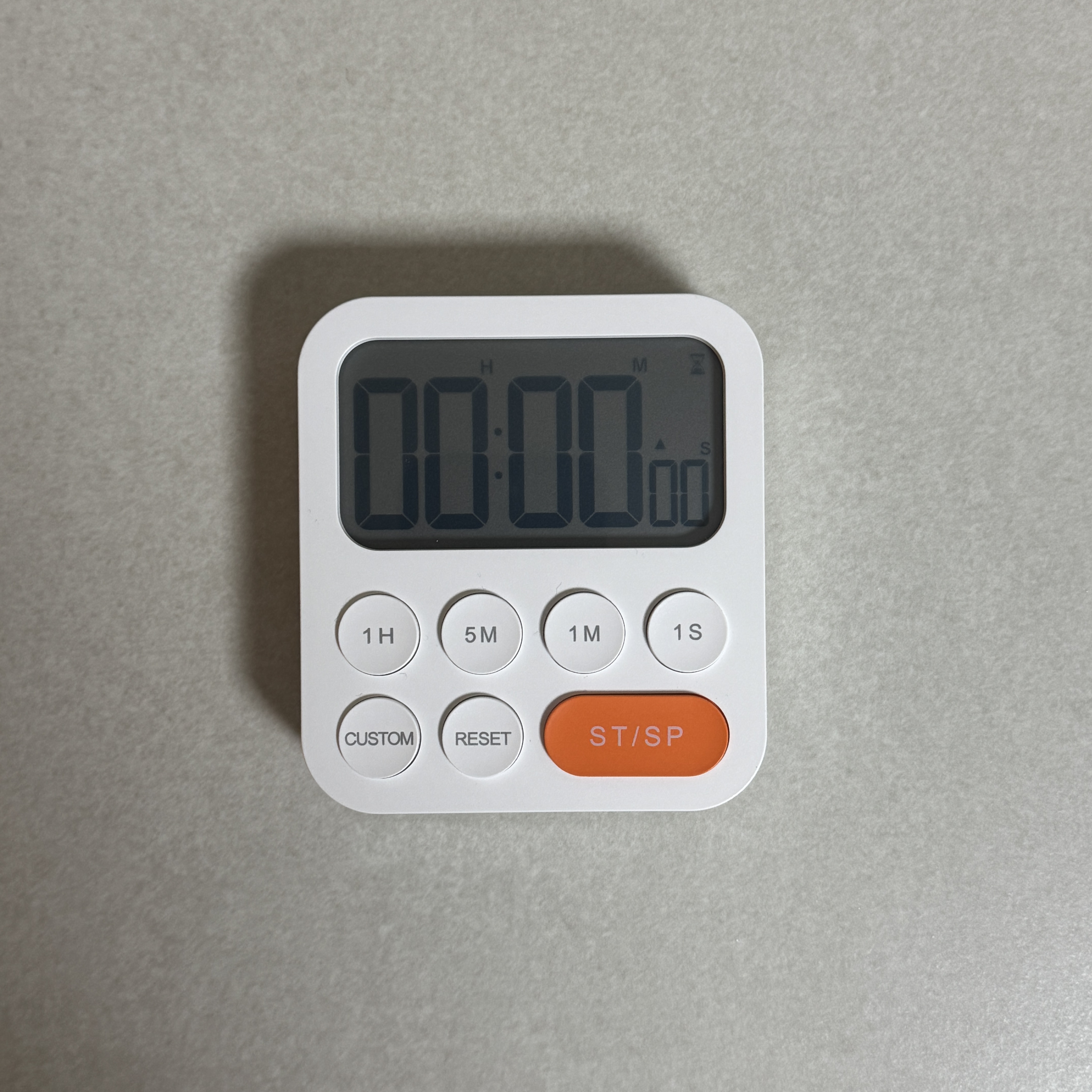 카운트 다운 기능만 있는 건 아니고 카운트 업 기능도 있더라. 그러나 이렇게 기능 있어봤자 큰 의미가 없지. 나는 카운트 다운 기능 때문에 산 거니까. Custom 버튼은 내가 셋팅해둔 카운트 다운을 바로 작동하게 하는 버튼. 5분으로 셋팅해뒀다. 이쁘네.