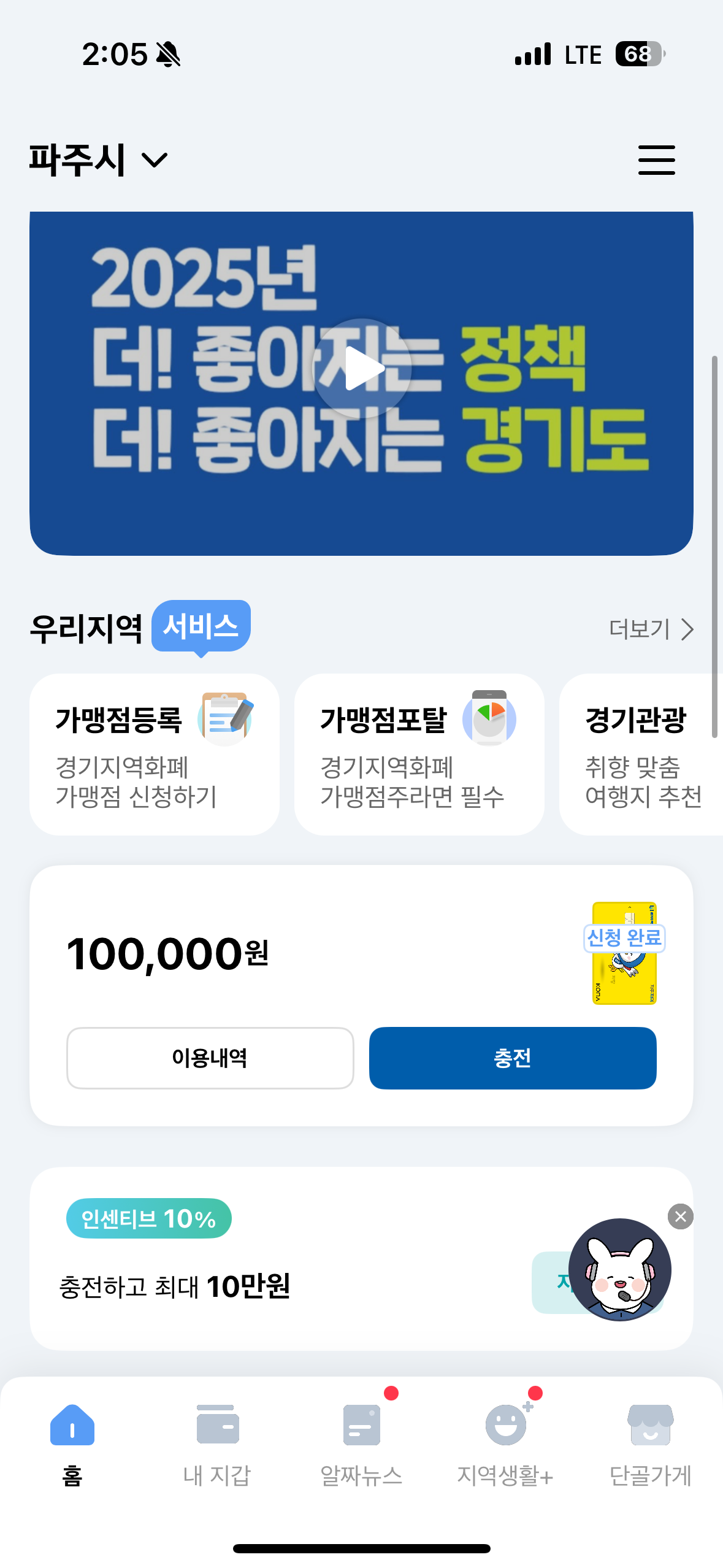 바로 지급되는 게 아니다 보니 승인까지 기다려야 하는데, 오늘 승인 알림톡으로 와서 경기지역화폐 들어가봤더니 10만원 충전되어 있더라. 잘 쓰겠스무니다.