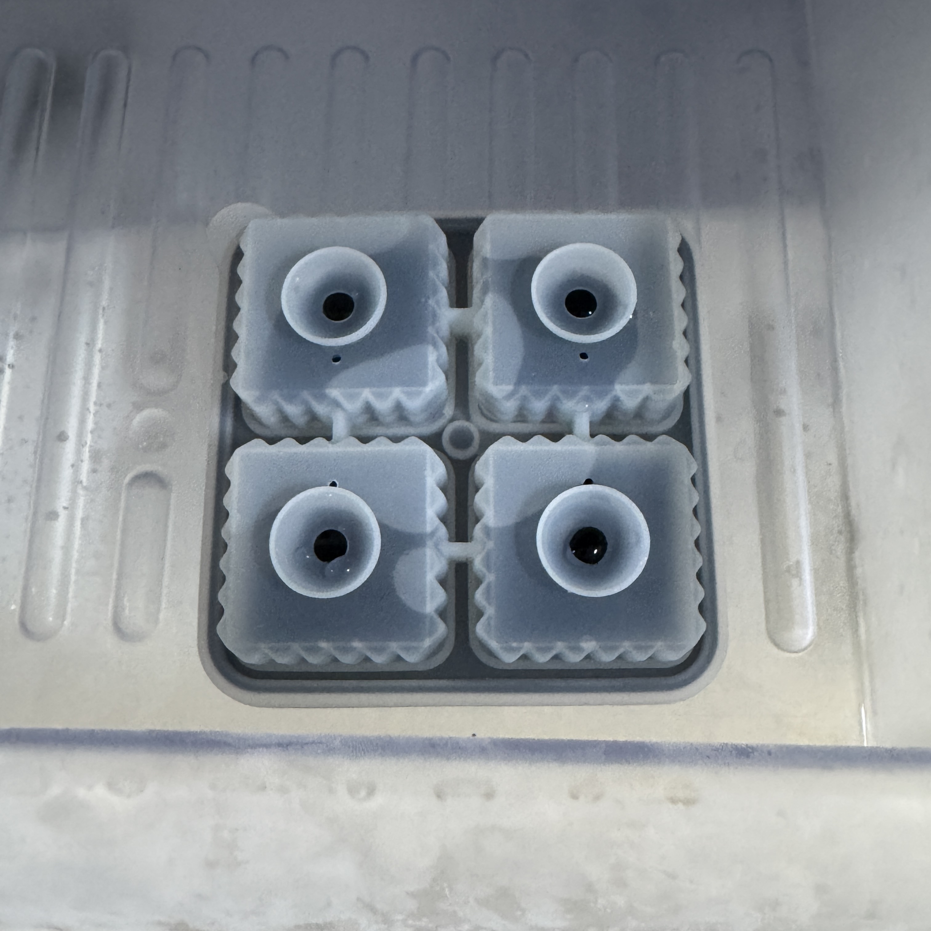 원형이랑 정육면체랑 두 종류 있던데, 정육면체 샀다. 근데 사고 나서 생각해보니, 이번에는 그냥 생수 넣었다. 그렇게 얼리면 투명 얼음 안 되는데. 다음 번에 다시 해봐야할 듯. 실리콘 재질이라 말랑 말랑하고 부드럽다.