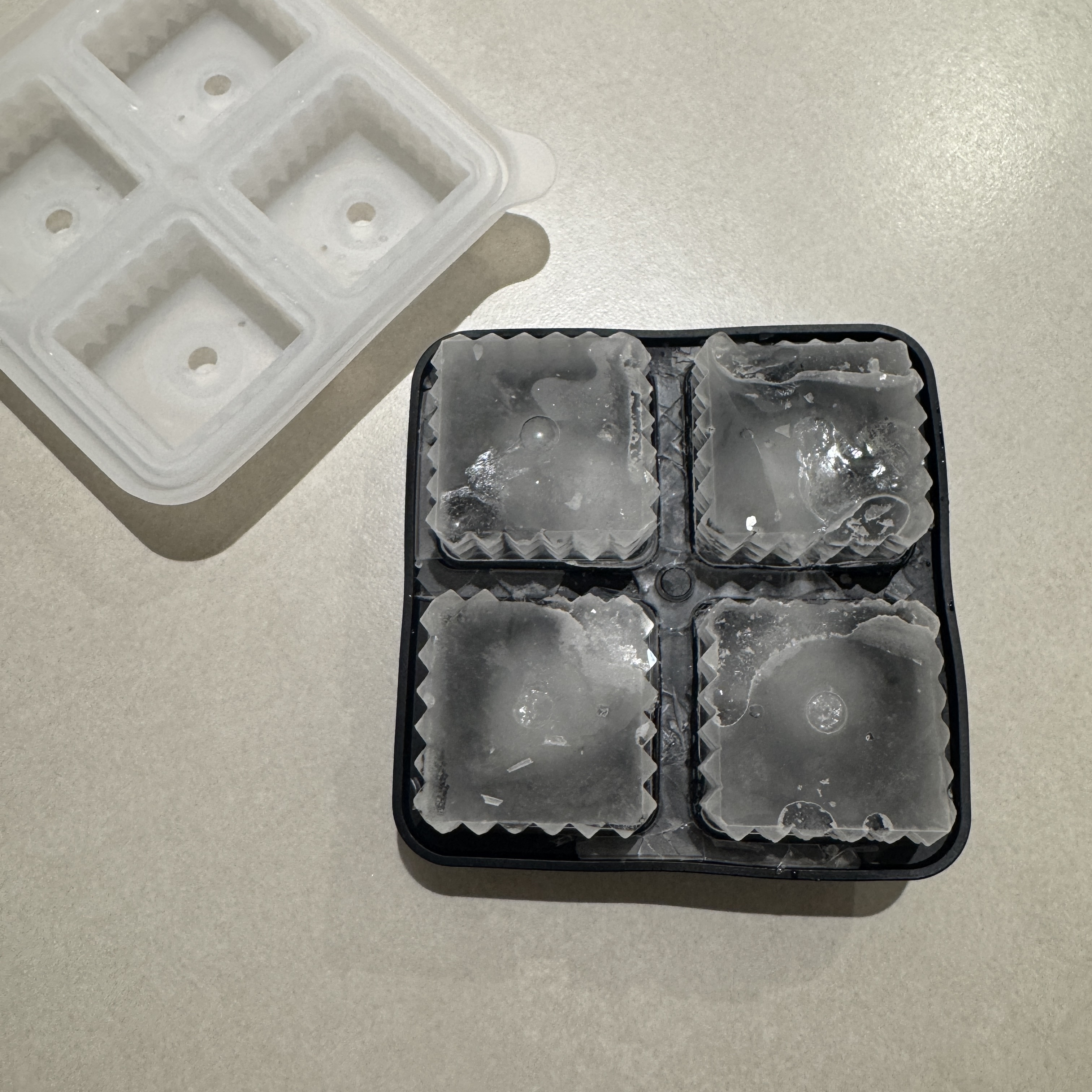 원형이랑 정육면체랑 두 종류 있던데, 정육면체 샀다. 근데 사고 나서 생각해보니, 이번에는 그냥 생수 넣었다. 그렇게 얼리면 투명 얼음 안 되는데. 다음 번에 다시 해봐야할 듯. 실리콘 재질이라 말랑 말랑하고 부드럽다.