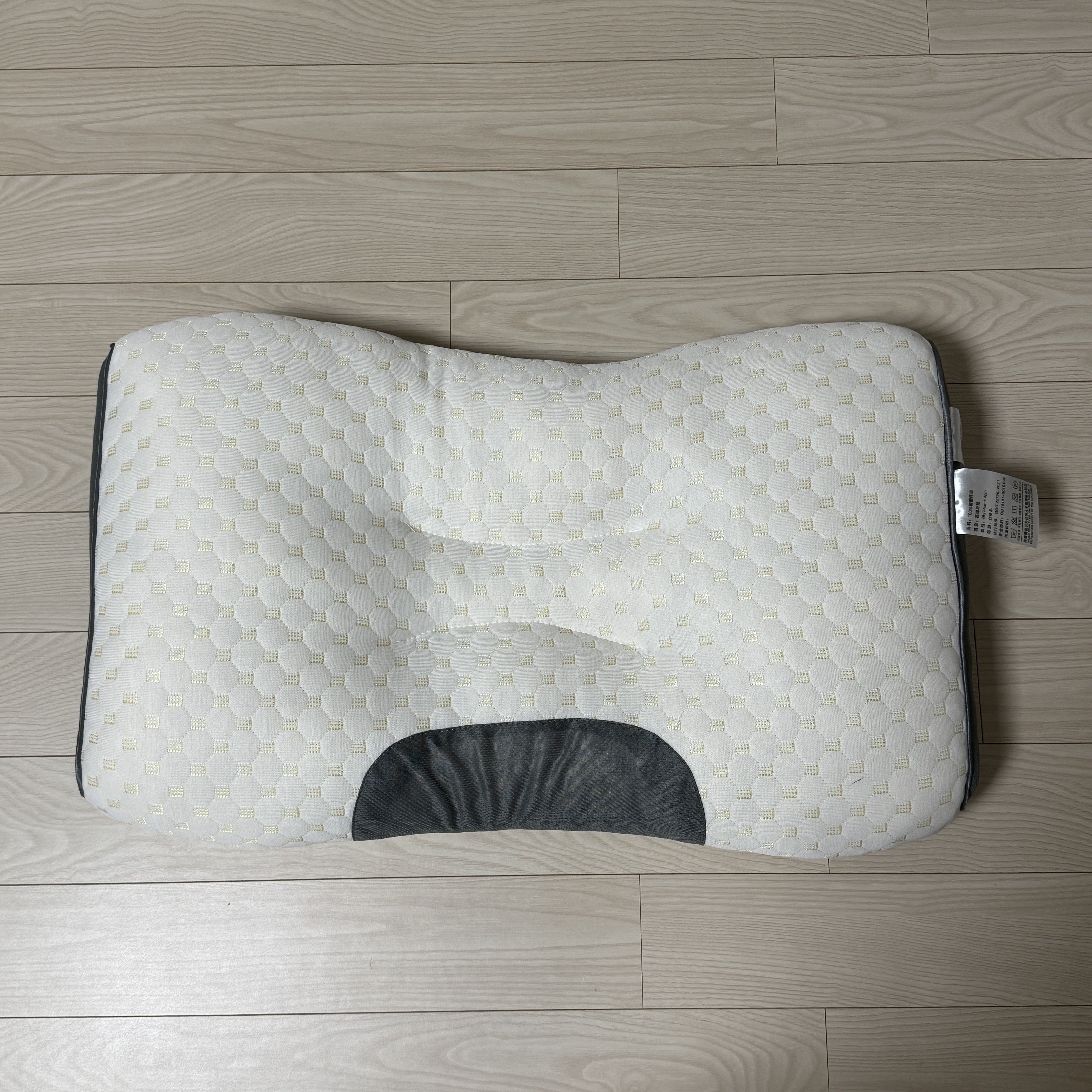 모양은 이렇게 생겼다. 지금 내가 쓰고 있는 실크 깃털 베개는 두툼해서 푹신하긴 하지만 낮은 베개를 선호하는 사람에게는 안 맞거든. 그래서 이거 사두면 혹시나 또 쓸 일이 있을 거라 생각해서 픽한 거다. 평소에는 테이블 겸 식탁으로 사용하는 2인용 의자에 등받이로 활용하고 있다. 그래도 사두면 쓸 데가 있긴 하더라. 다만 이제는 좀 자제 모드로.