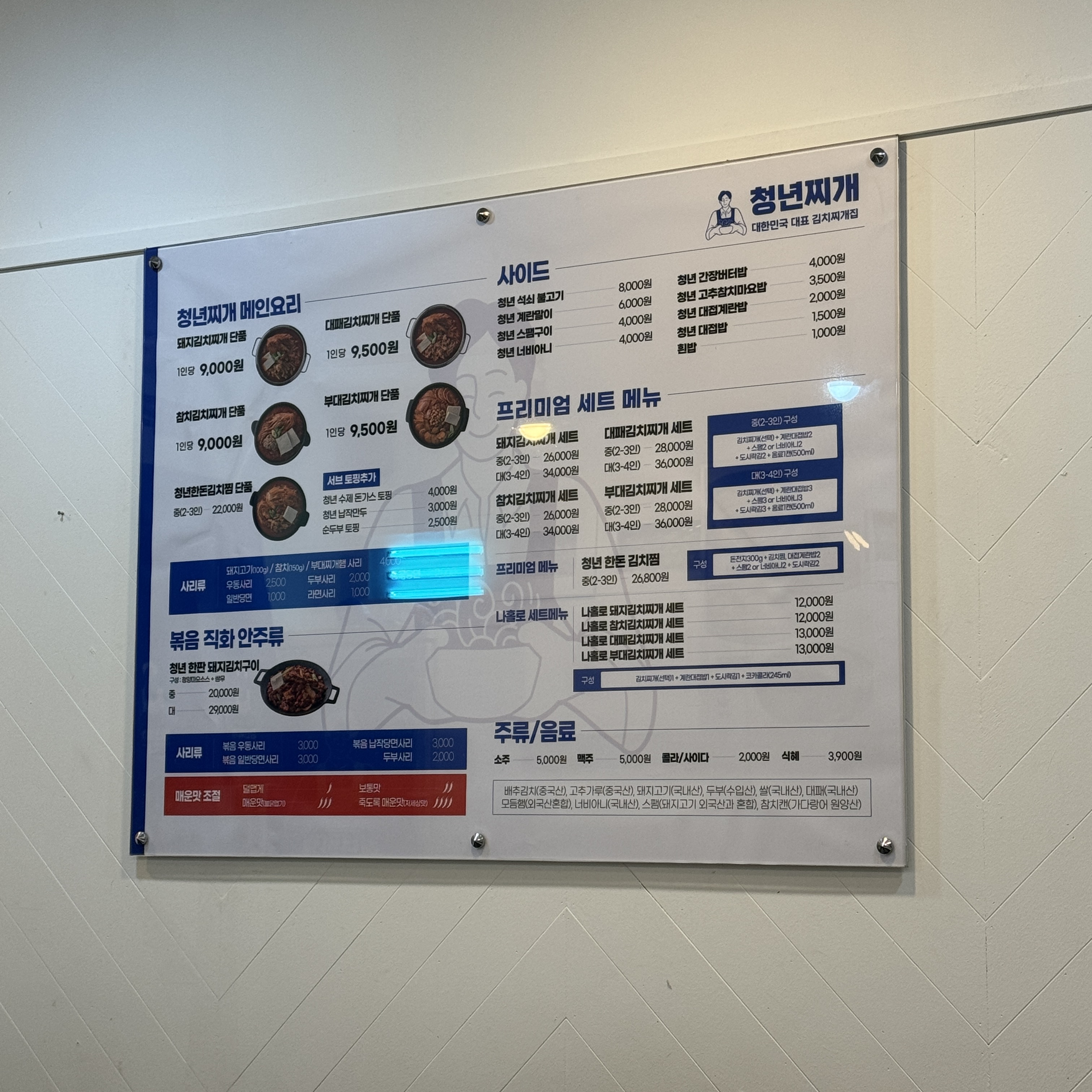 여긴 내가 수원에서 6개월 정도 호텔에서 장기투숙하고 있을 때, 종종 들렀던 집이다. 인계동에 있는 청년찌개. 한두번 가다가 여기 사장이랑(젊은 청년) 이런 저런 얘기하면서 오곤 했던 곳. 금요일은 일짝 닫는 경우 많다. 왜? 사장 놀아야 되거든. 불금이잖아. ㅎ