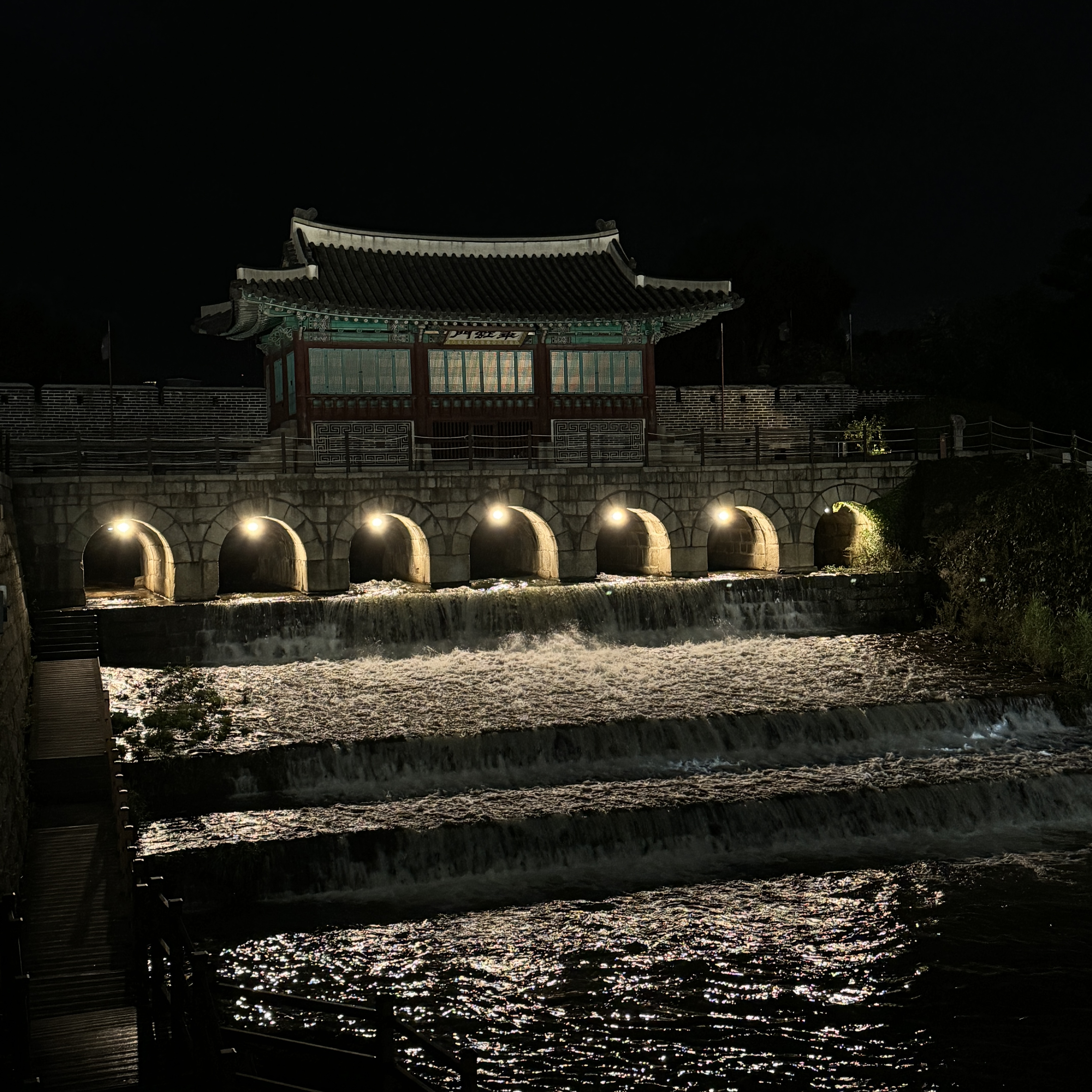 이 때가 여름이라 시원하더라. 수문에 조명이 있으니 운치있고. 보기 좋더라.