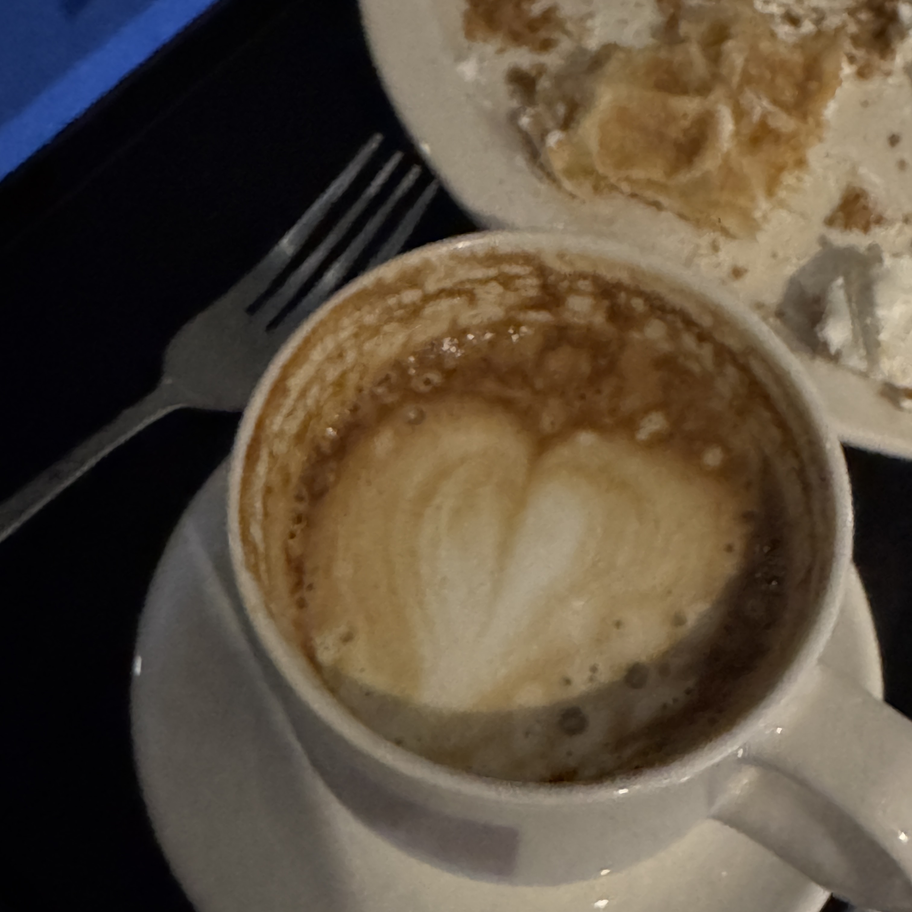 커피는 라떼, 크로플 시켜서 먹었다. 크로플 바삭.