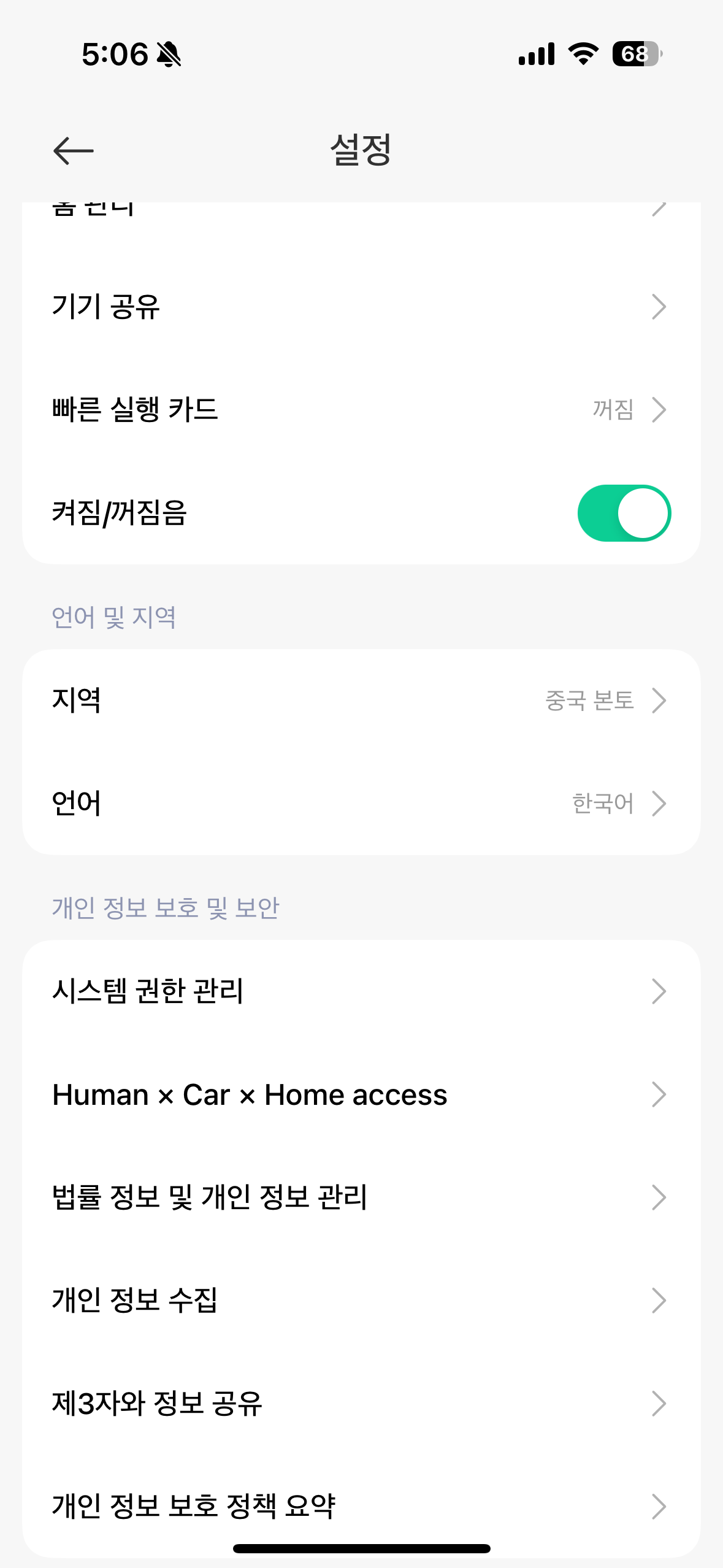 미 홈 설정으로 들어가서 추가 설정으로 들어간다. 거기서 지역을 중국 본토로 설정하면 된다. 아마 애플 스토어에서(난 아이폰이라) 다운받아서 설치하면 기본값이 미국으로 되어 있을 거다.