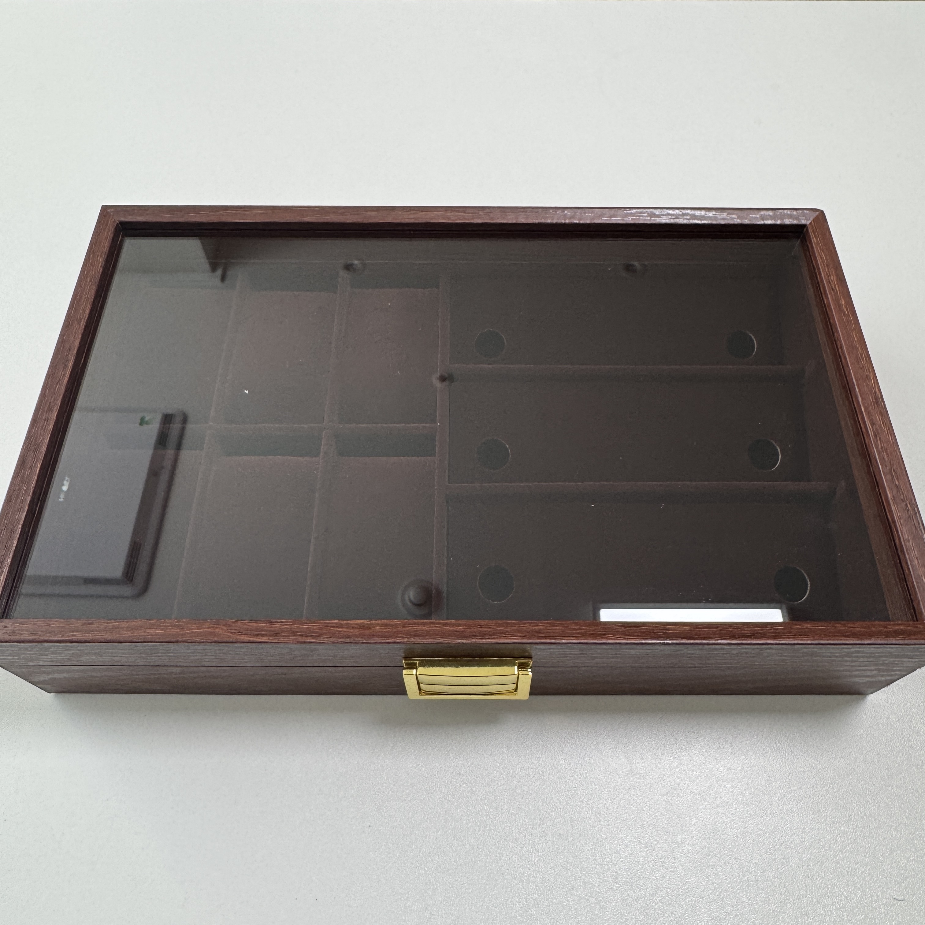 안경은 3개 보관 가능하고, 시계는 6개 보관 가능하더라. 안경 보관하는 데에 구멍이 두 개 나 있는 건 거기에 템플(안경 다리)를 넣는 거다.