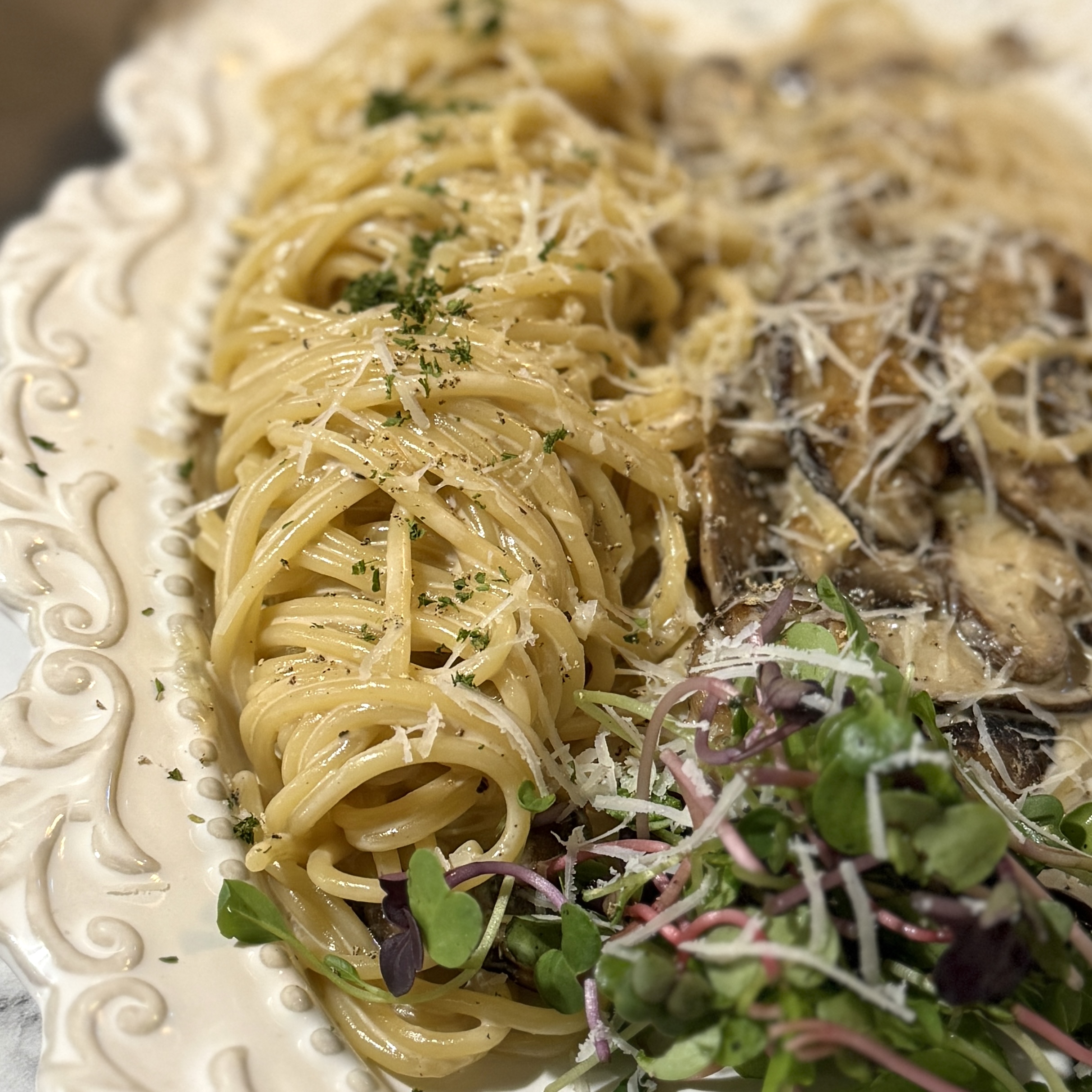 새우 타르타르 샐러드(17,900원), 머쉬룸 크림 파스타(16,900원), 살치살 스테이크(35,000원). 가격은 그리 비싼 편은 아니고, 맛도 그 정도 수준. 수원에서 한옥 레스토랑 이용하고 싶다? 그러면 가보길. 보니까 연인들이 대부분이고, 생일 이런 걸로 선물, 꽃과 함께 식사하러 온 커플도 있더라.