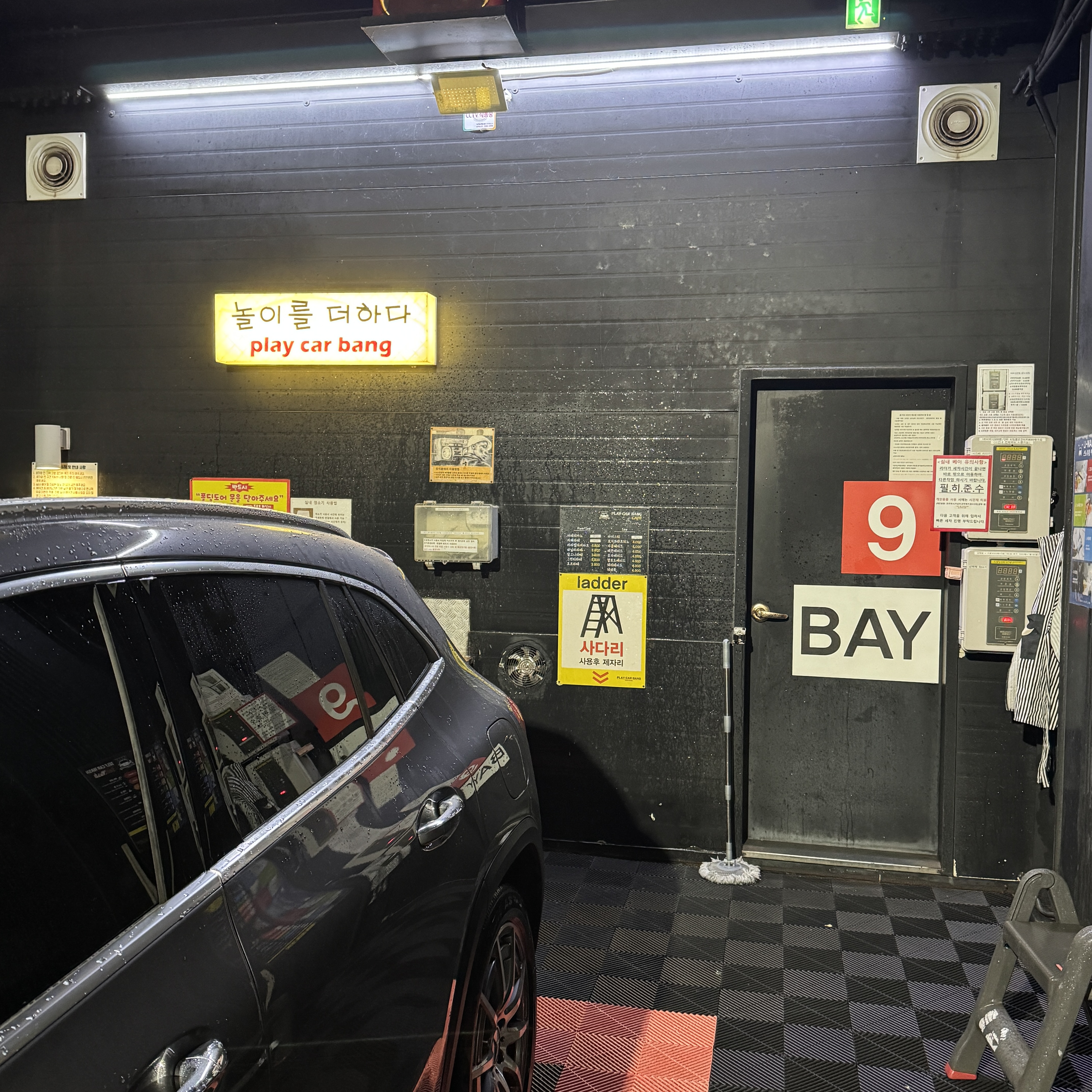 뭐 이런 걸 다 이용할 수 있다. 24시간 셀프 세차로는 한 번도 해보지 않았던 하부세차도 했다. 게다가 왁스까지. 아. 하부세차는 시간이 4배속으로 줄어든다. 그래도 30분하니까 넉넉하게 이용하더라. 시간 구애 안 받고. 부스 안에는 싱크대도 있어서 걸레 같은 거 빨 수도 있다. 온수도 나오고.