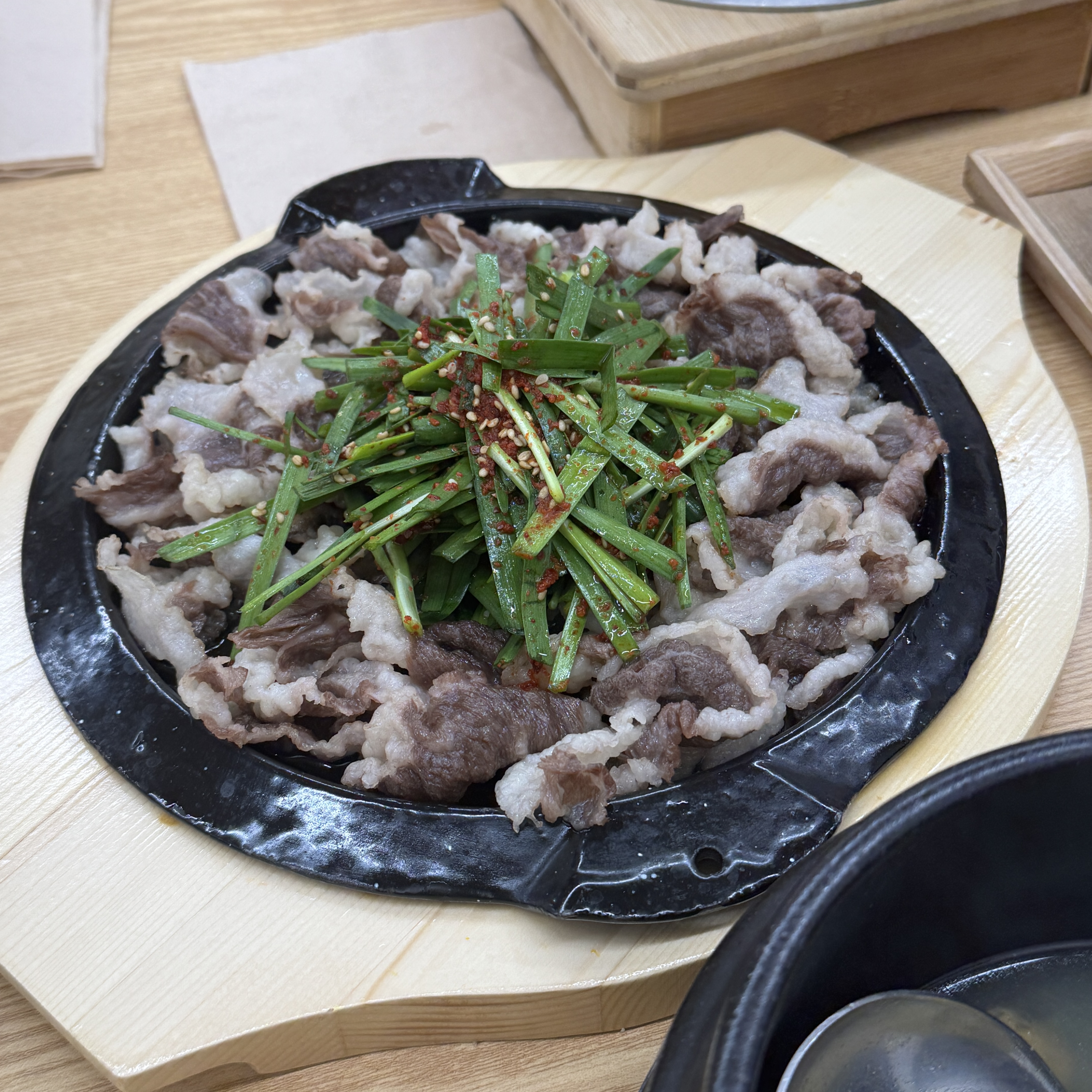 시킨 메뉴가 차돌구이 정식(42,000원)인데, 차돌구이랑 솥밥 나오고 미역국 기본으로 나오더라. 집밥 먹는 것처럼 먹을 수는 있다. 그런데 그냥 맛있다 그런 건 아니고 한끼 식사다. 뭐 그런 느낌. 그냥 쏘쏘.