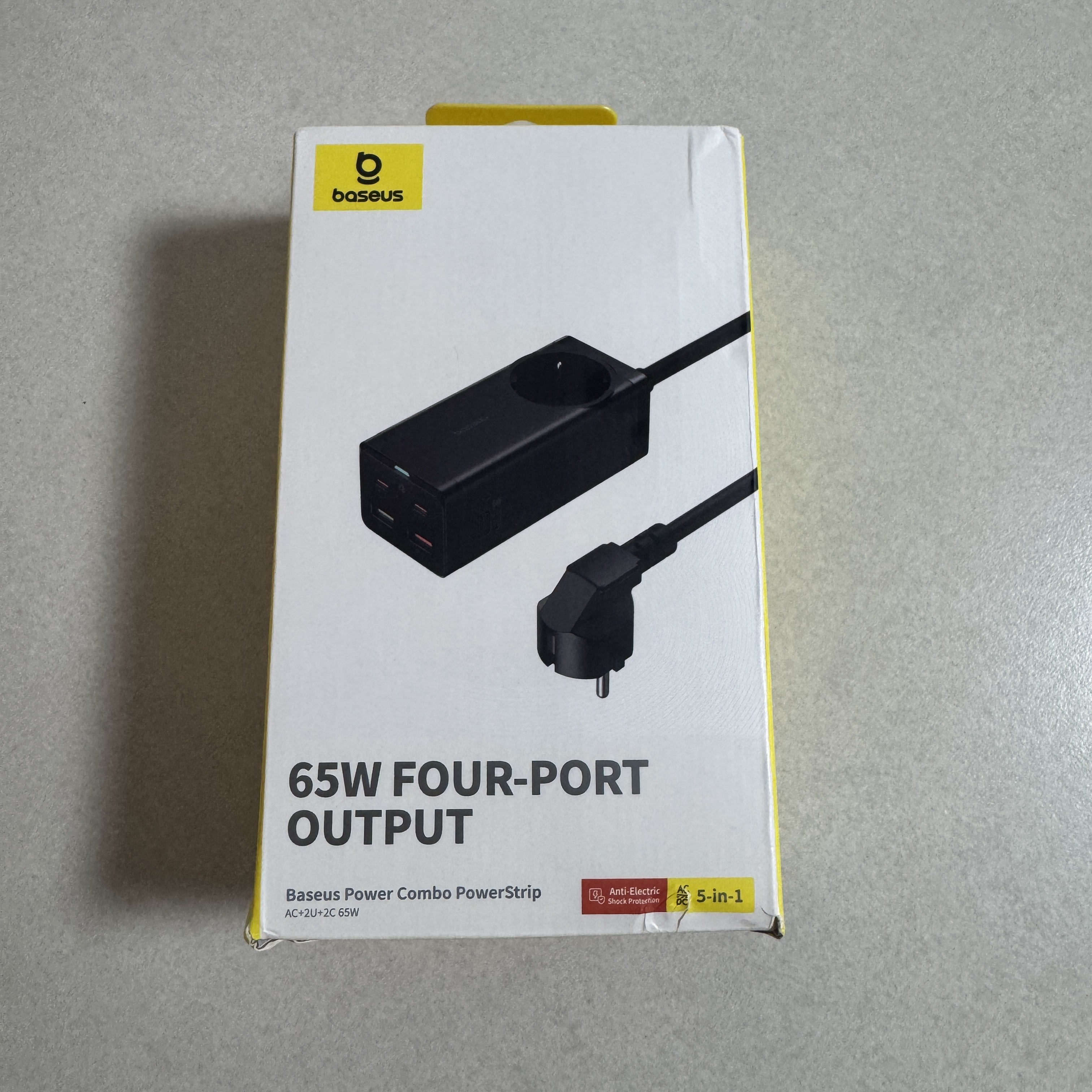 이거 멀티탭이긴 하지만 AC 포트는 하나 밖에 없는 제품이다. 그래도 이걸 산 건 USB-C, USB-A 포트가 2개씩 있기 때문. 제품은 두 가지 타입으로 나뉜다. 65W, 100W. 여러 포트를 쓰면서도 충분한 전원 공급이 되어야 하면 100W를 사야겠고, 그에 걸맞는 케이블(USB-C 케이블이라고 해도 100W 지원되는 케이블이 있듯)이 있어야겠지만 그렇게까지는 내가 필요하지 않고 노트북은 연결해서 써야 하기에 65W 를 구매했다.