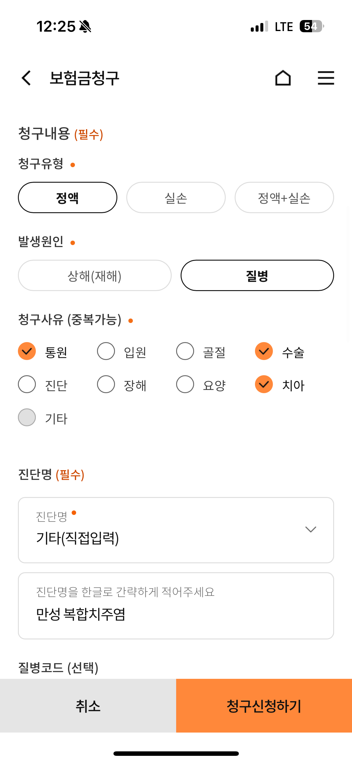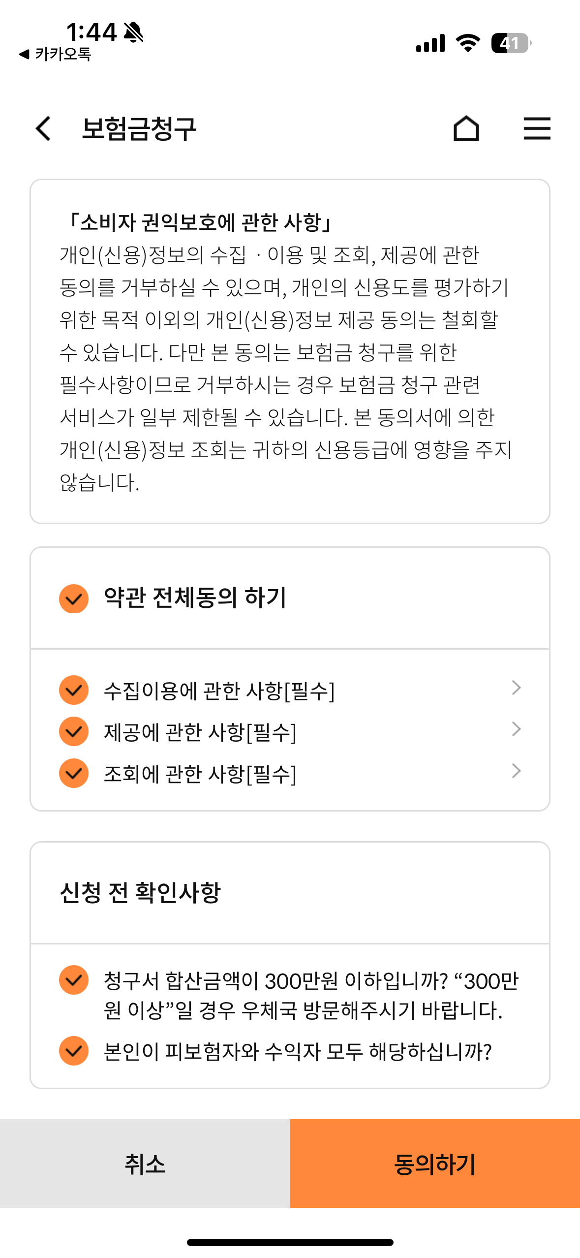 우체국 보험이나 미래에셋이나 앱에서 청구할 수 있고, 청구한 내역은 다음과 같다.(우체국 보험만 보여준다.)