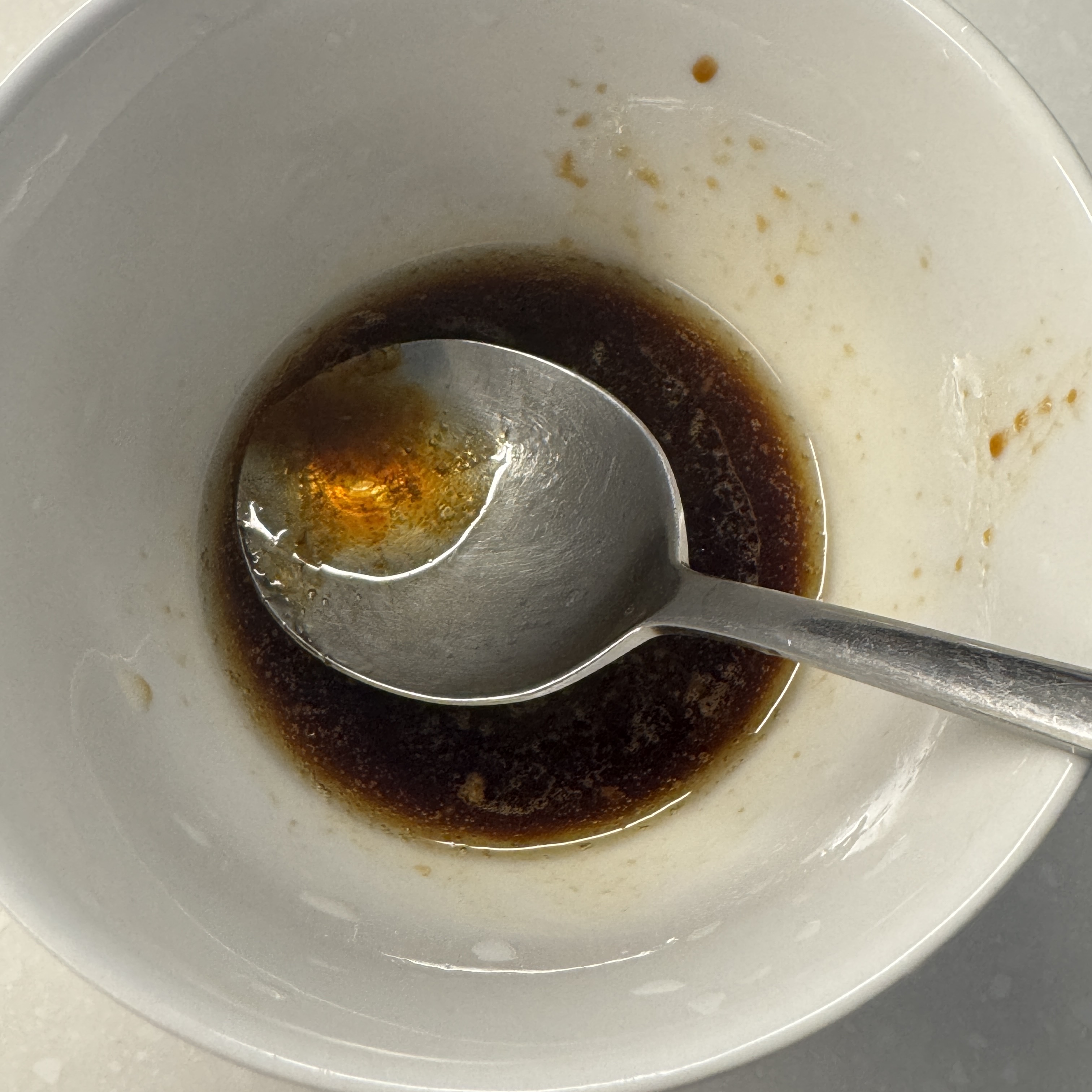 양조간장 한 스푼, 참기름 한 스푼, 물엿은 한 스푼보다 조금 더 넣고, 다진 마늘은 냉동된 거 한 칸 다 쓰기에는 양이 많고 해서 반 칸 정도만 잘라서 넣었다. 잘 섞어주면 된다. 벌써부터 맛있는 냄새가. 참기름 때문인 듯.