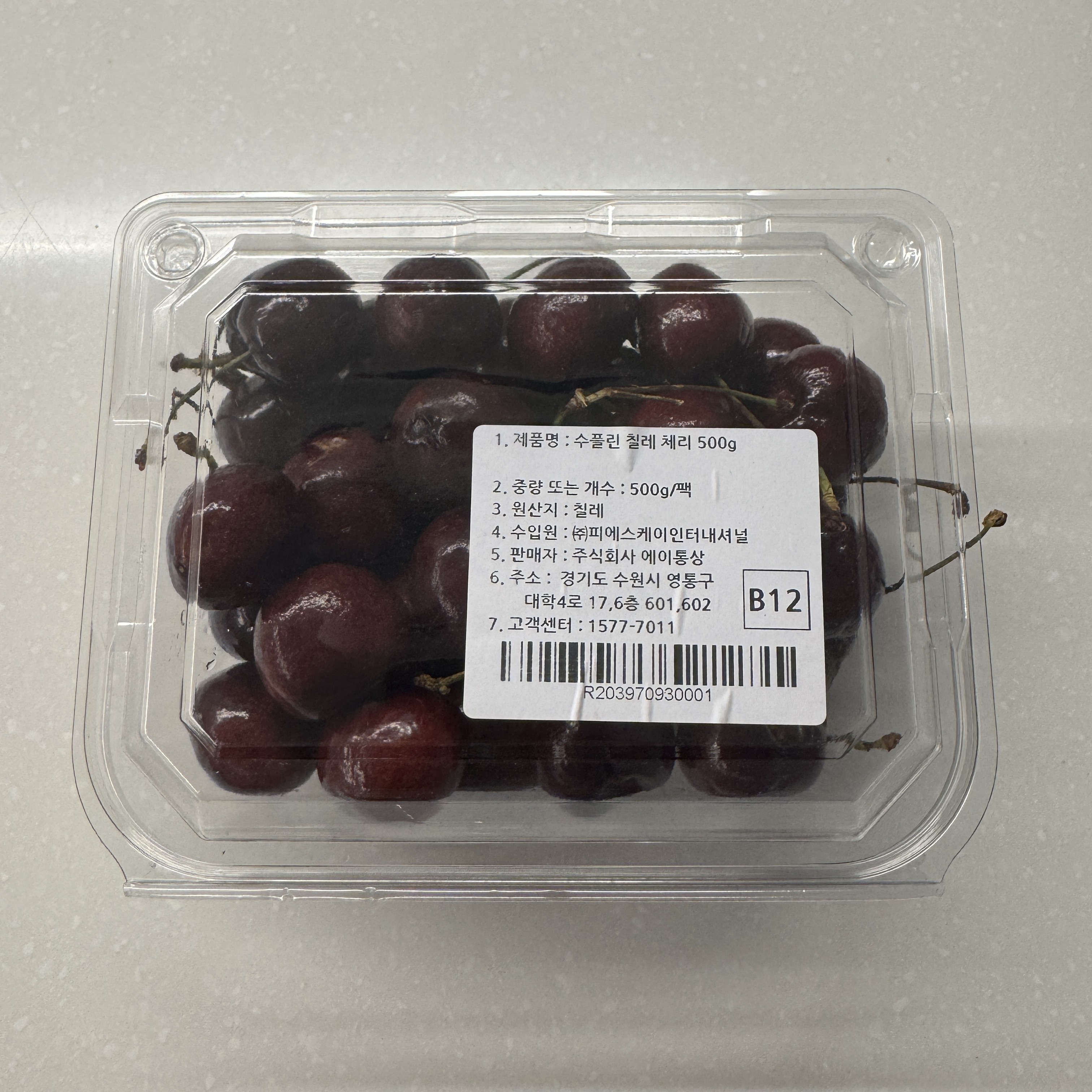 이번 주에 먹으려고 산 과일은 체리다. 500g. 이 정도면 뭐 두어번 정도 밖에 못 먹는다. 일산에 있을 때도 체리 몇 번 사먹었었는데, 그 때는 인근의 할인 마트에서 삿 맛있게 먹었었는데, 이건 좀 맛이 덜하더라. 가격은 7,480원.