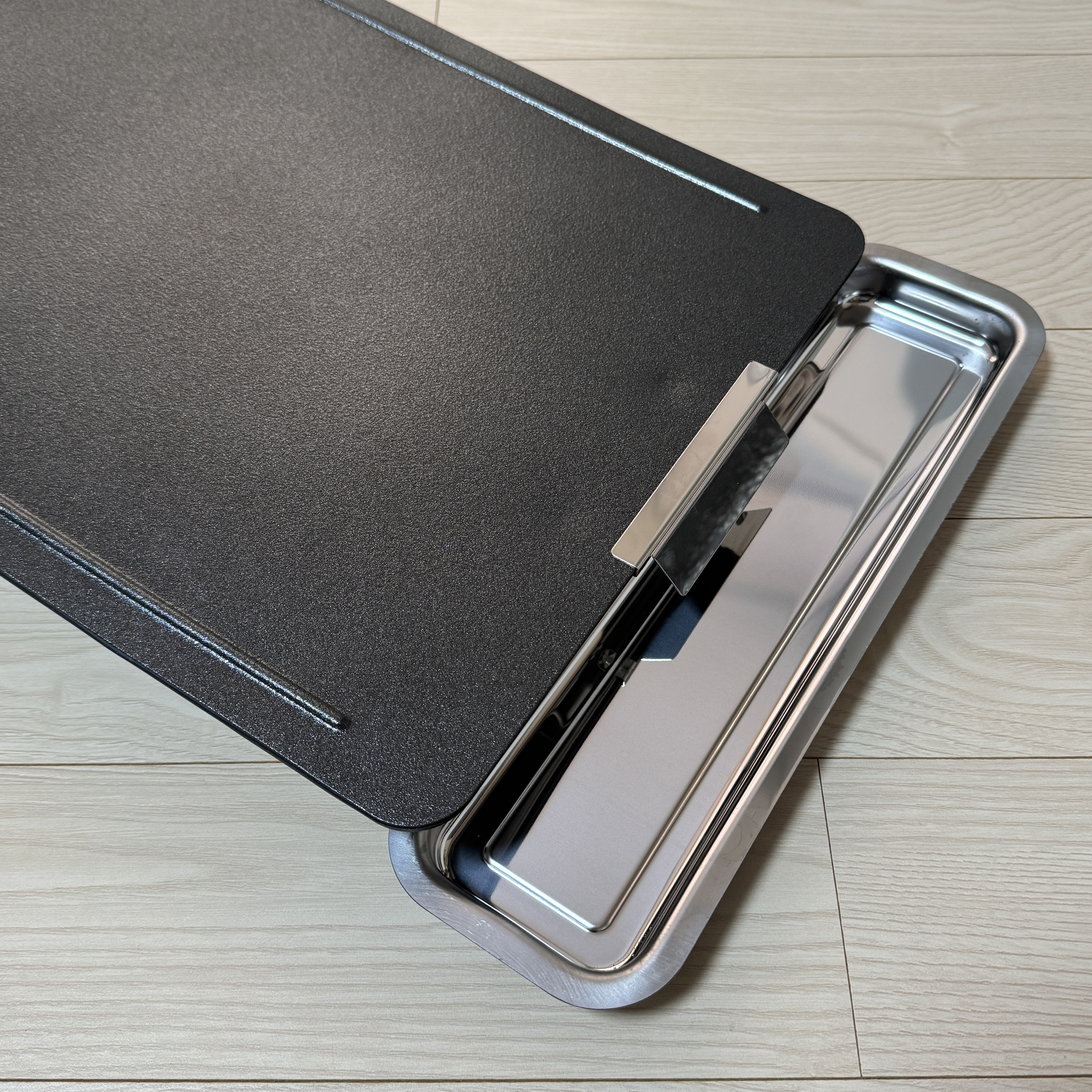 요건 삼겹살 키트인데, ㄷ자 같이 생긴 걸 한쪽에 꽂아주면 그릴이 기울어지게 되고 끝부분에 Z핀을 달아주면 기름이 Z핀을 따라 흐르게 된다. 그래서 기름받이에 기름이 담기게 하는 용도. 조만간 삼겹살 구어보자.
